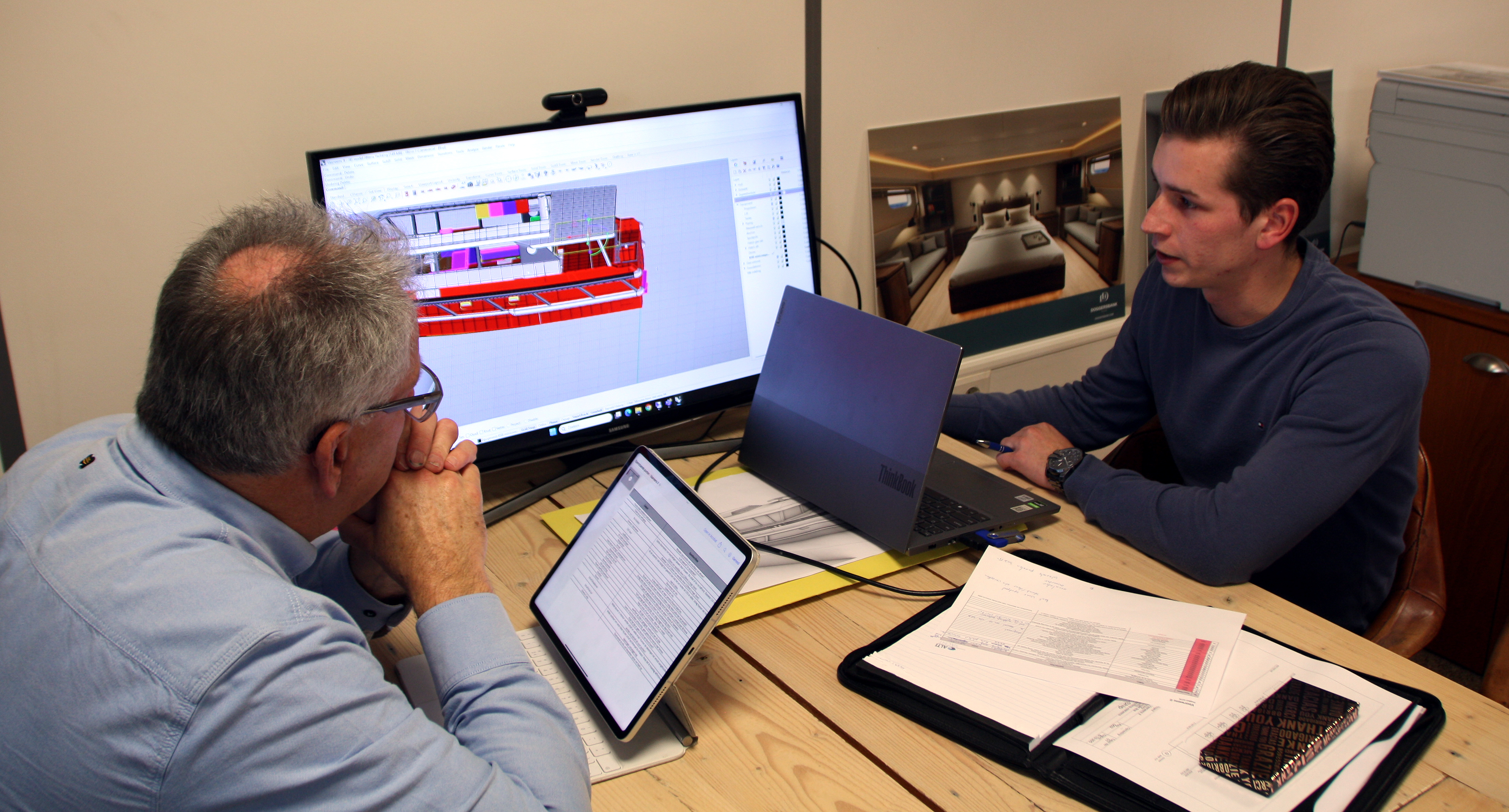 Precies 2 jaar later werd in november 2025 het bouwcontract met Altena Yachting getekend, waarna we over konden gaan tot het uitkristalliseren van het ontwerp, dat verder geheel digitaal bouwklaar gemaakt moest worden. Een maand later werden de snijfiles aanbesteed waarna het snijden van het staalpakket kon worden aangevangen. Eindelijk... we kunnen gaan bouwen!