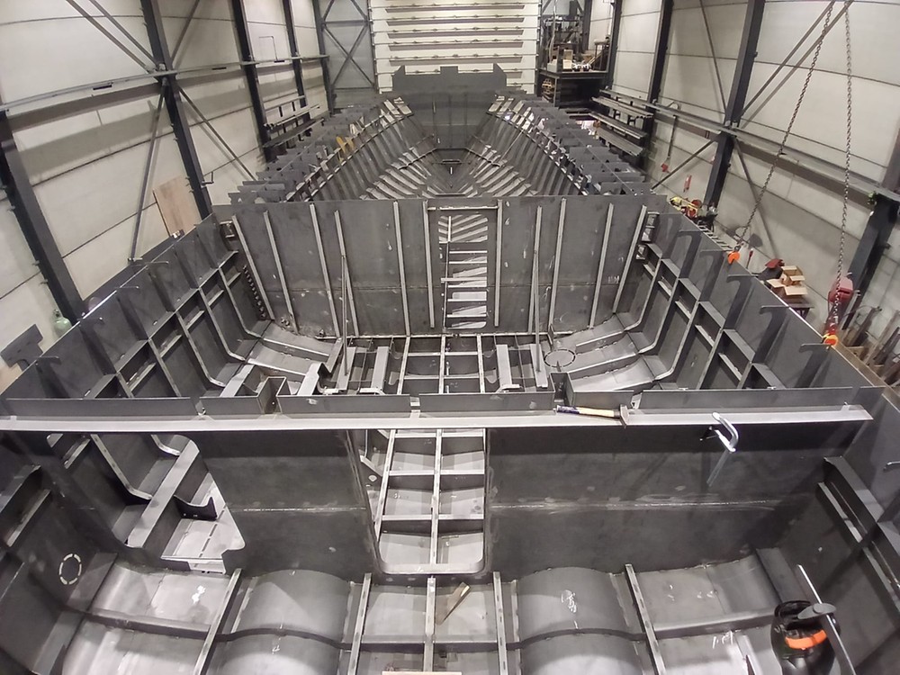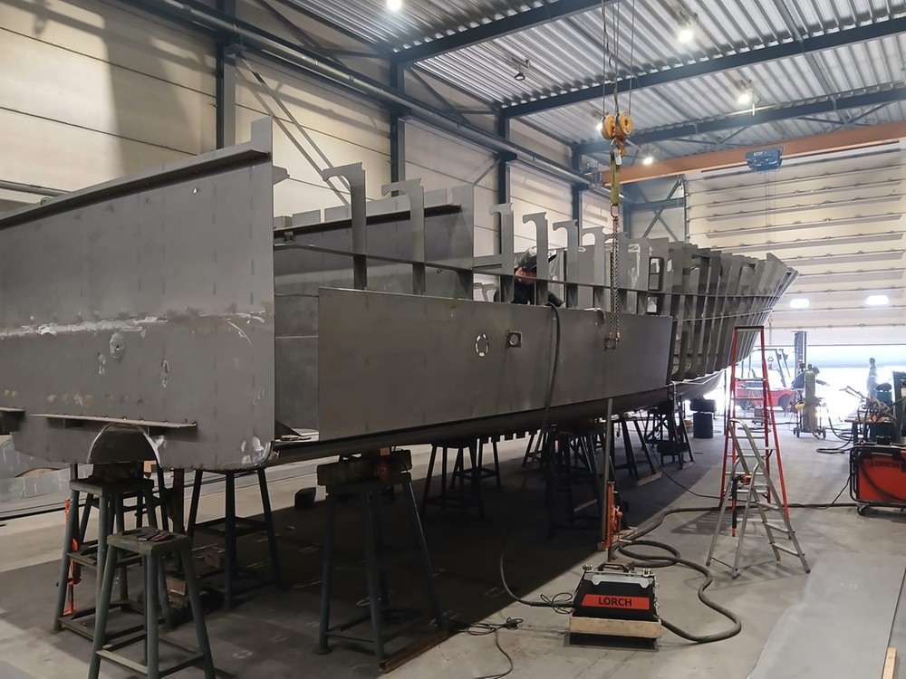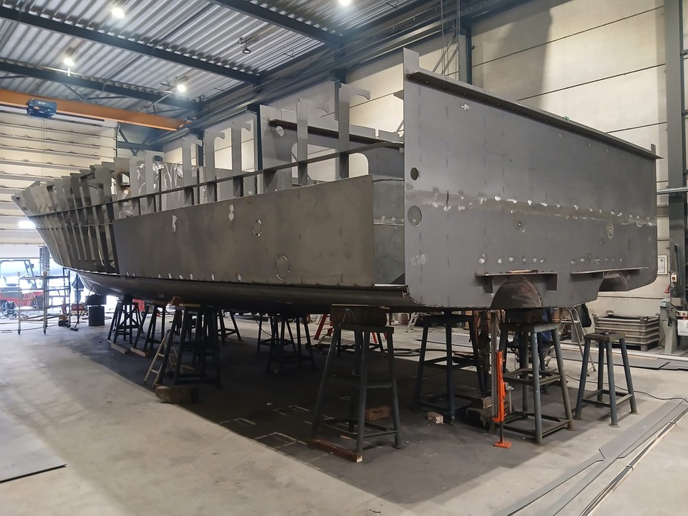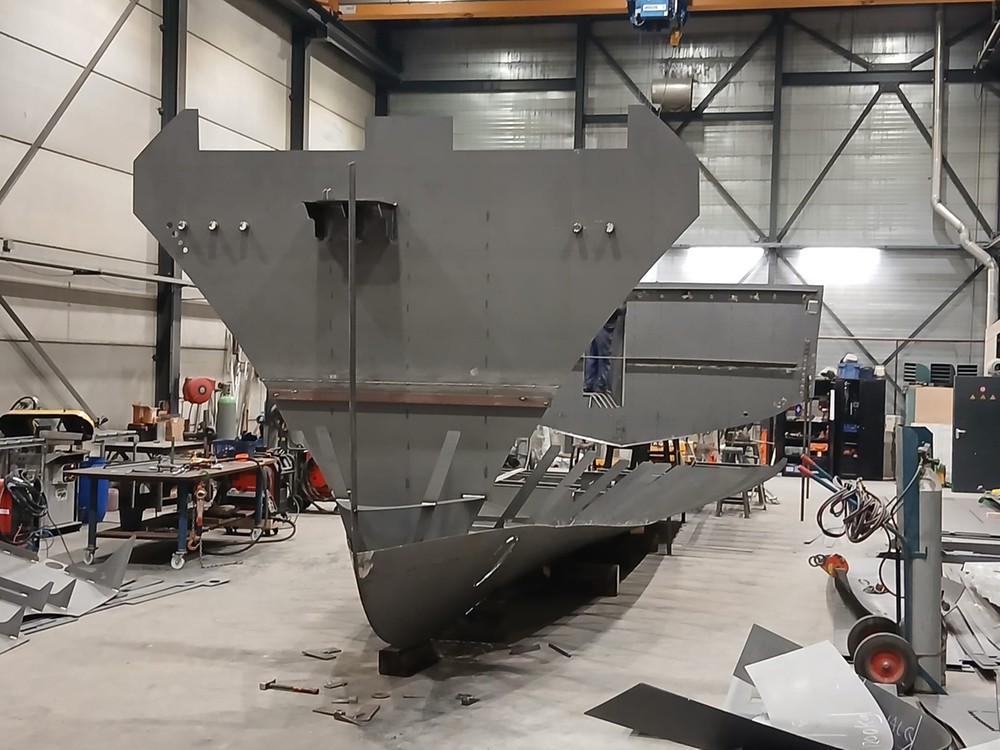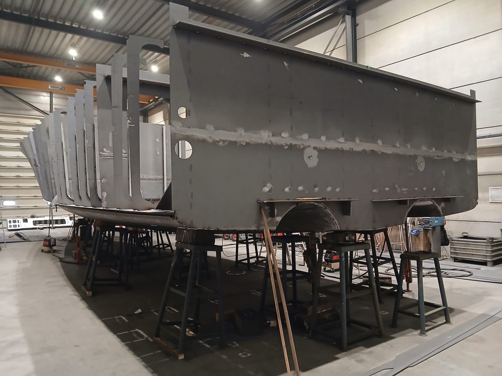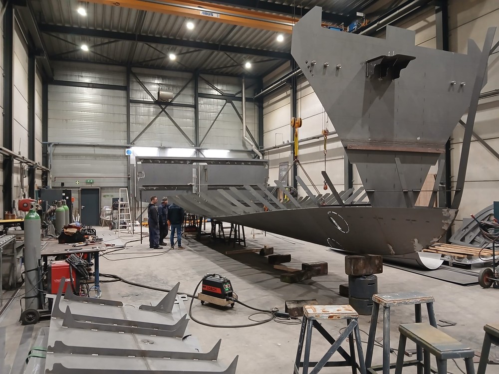 Precies 2 jaar later werd in november 2025 het bouwcontract met Altena Yachting getekend, waarna we over konden gaan tot het uitkristalliseren van het ontwerp, dat verder geheel digitaal bouwklaar gemaakt moest worden. Een maand later werden de snijfiles aanbesteed waarna het snijden van het staalpakket kon worden aangevangen. Eindelijk... we kunnen gaan bouwen!