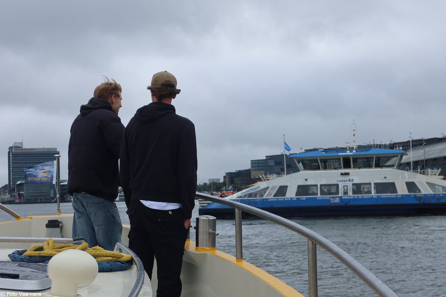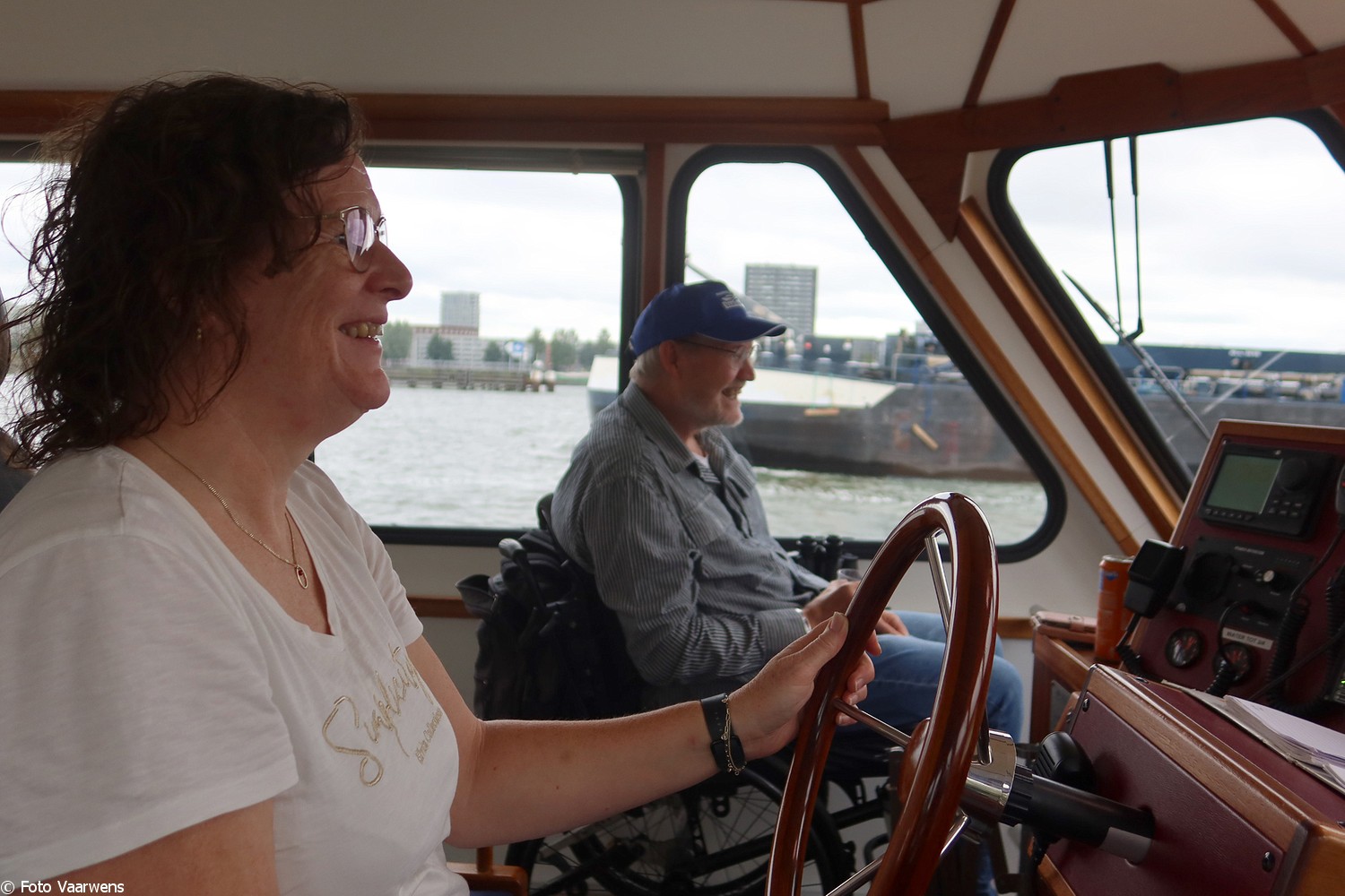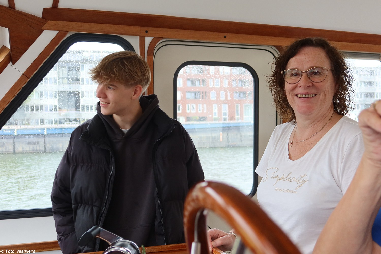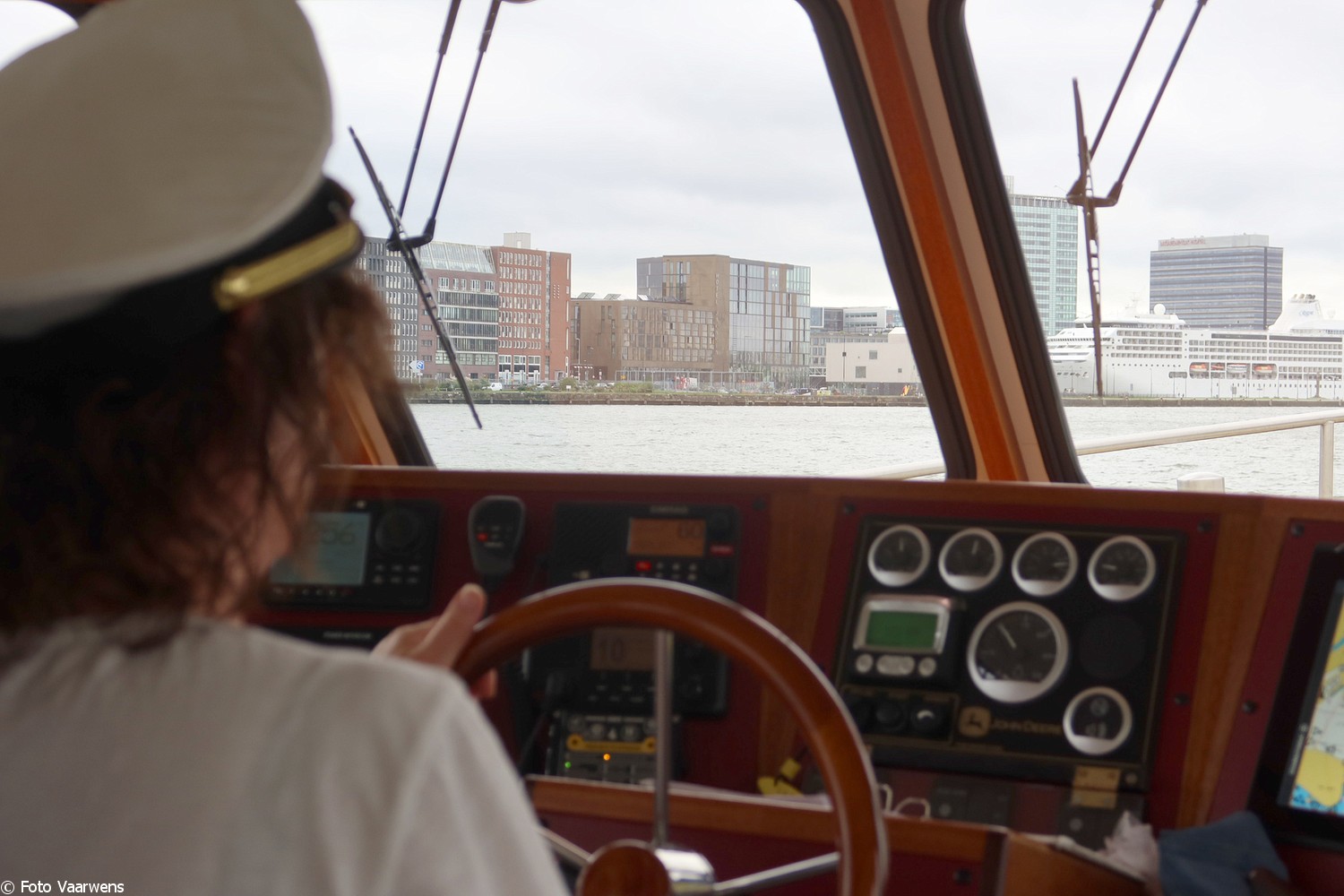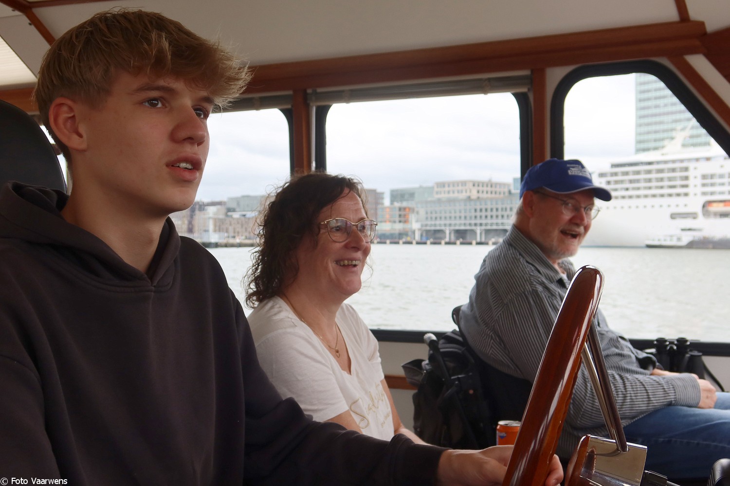 Via Entrepotdok naar Entrepothaven, langs de Oranjewerf langzaam terug naar de Marinahaven. Op dit stuk hebben Truus en de jongste zoon Marijn nog een tijd roer van het Vaarwensschip overgenomen.