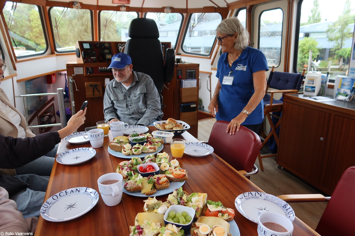 Om 11.15 uur kwam de familie aan met eigen vervoer, schipper Anita en boots Hanneke liepen snel naar ze toe om ze te verwelkomen. Aan boord gekomen en onder het genot van koffie/ thee en de heerlijke slagroomsoesjes werd besproken waarnaar toe varen de wens was. Het weer was niet geweldig, miezerig en bewolkt. De Zaanse Schans hadden ze de vorige keer gezien, dus de keus ging naar de prachtige havens van Amsterdam te bekijken.
