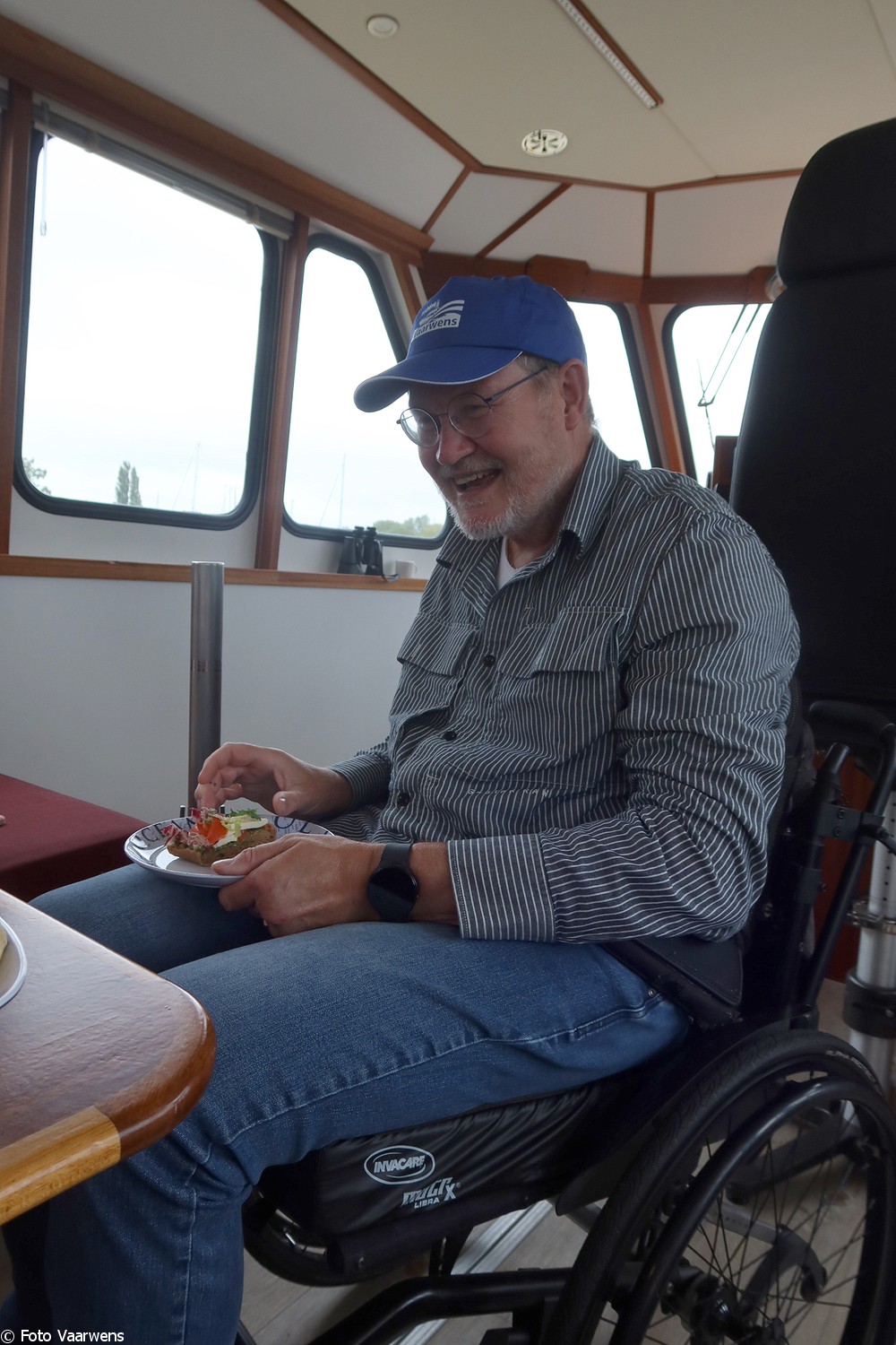 Tijdens de lunch vertelde Henk hoe zijn ziekteverloop is gegaan. In 2011 begonnen de eerste verschijnselen. De diagnose was PLS. Henk was wielrenner en dat ging steeds moeilijker, maar hij deed mee met Tour du ALS, en in 2022 deed hij mee met Cityswim, waarbij hij nog op de Meander, het schip van Inge en Evert de oprichters van Stichting Vaarwens, is geweest. Henk hoopt in 2027 nog een keer mee te kunnen doen met de Cityswim.