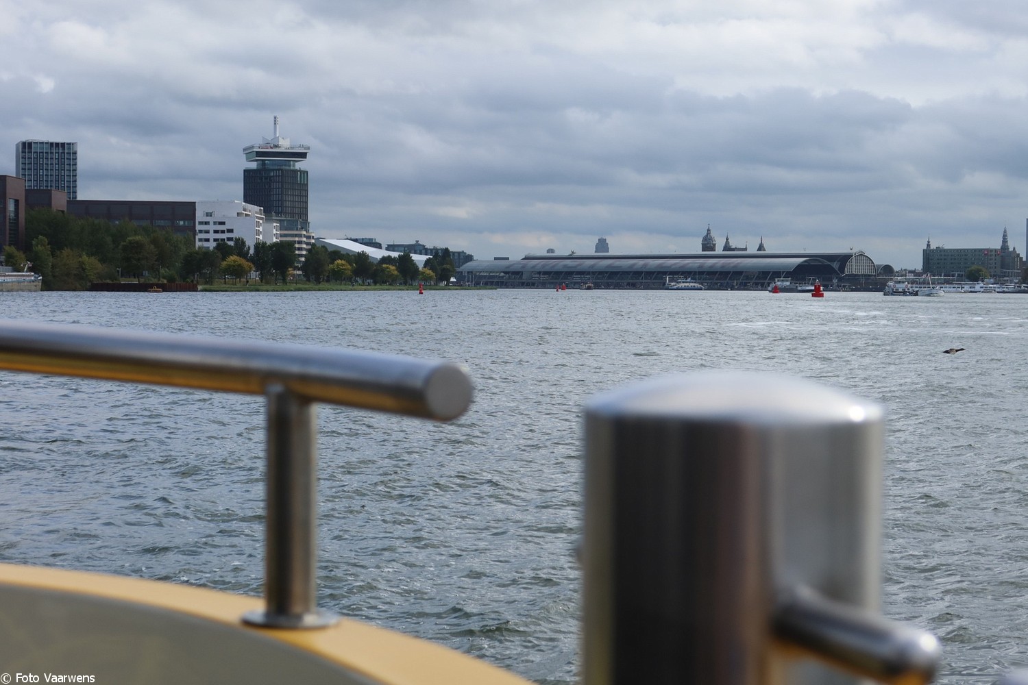 Om 11.30 gingen de trossen los, richting Houthaven, rondje gevaren, langs gebouw van zeecontainers en langs het Centraal Station. Richting Y-haven, waar het natuurlijk over Sail ging, uitleggen hoe de delen van de brug eruit gehaald zijn om alle schepen binnen te laten varen.