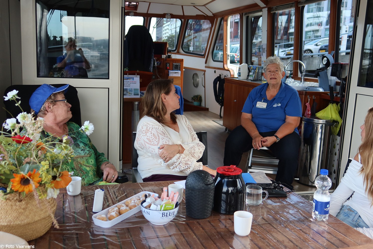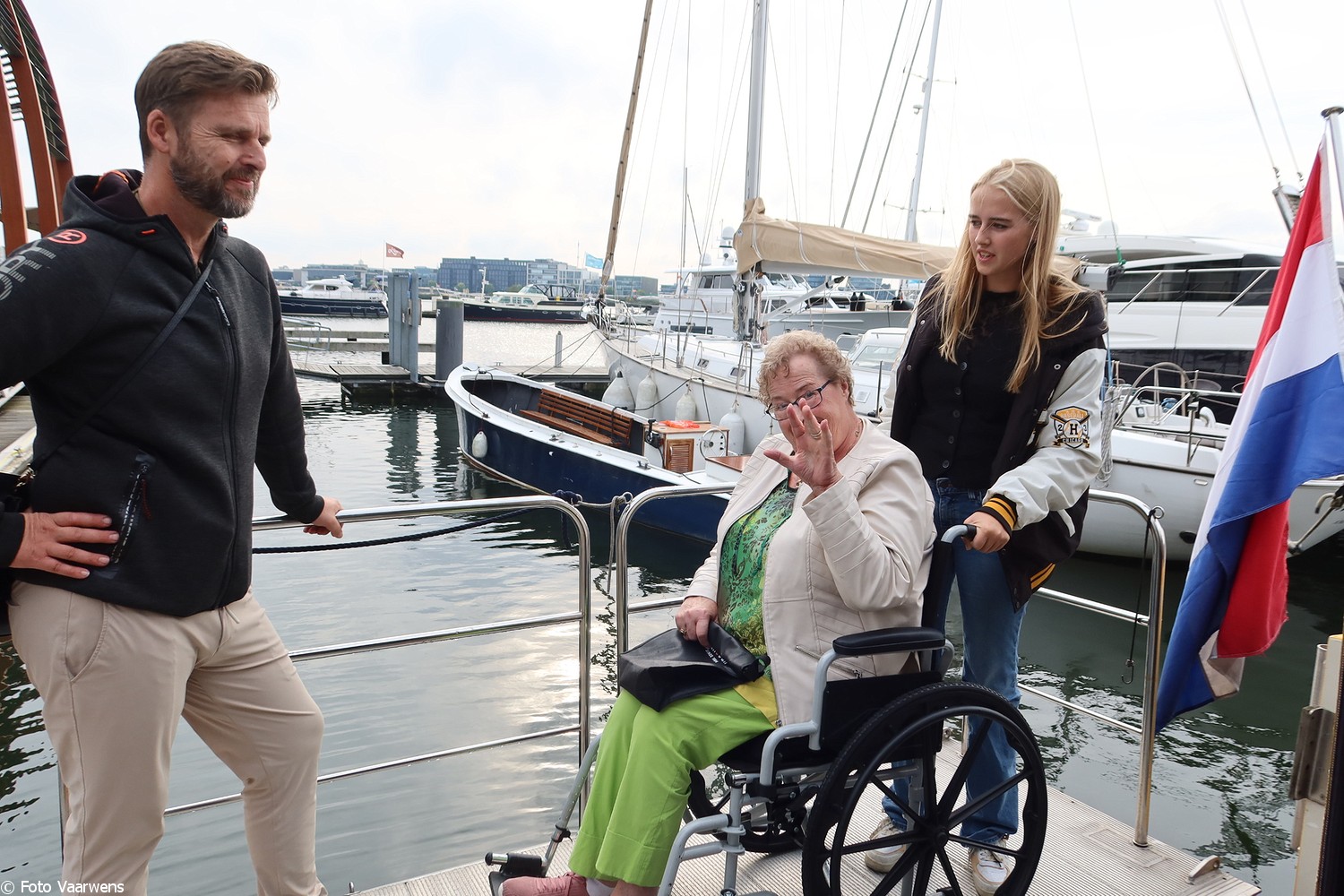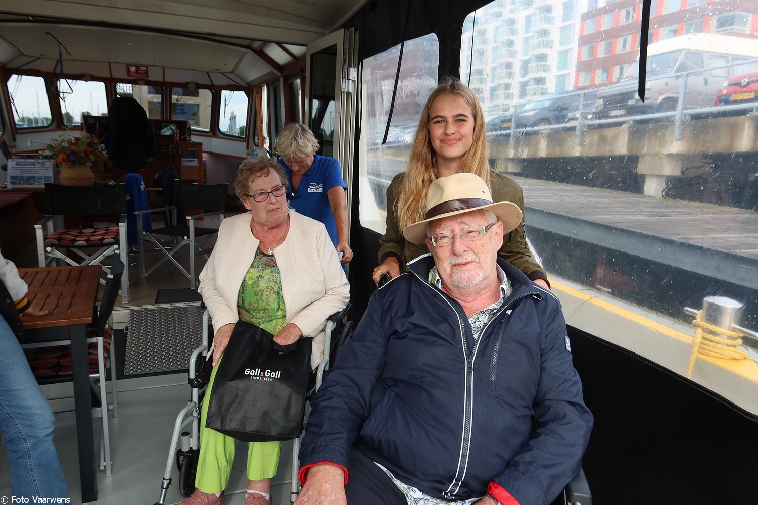 Dagschipper Frouk en boots Marleen zijn op tijd aan boord en maken het schip vaarwens klaar; Vandaag verwachten we onze vaargaste Renel en haar man Gert. Ze melden zich klokke tien en Marleen is gelukkig net terug van de HEMA met de heerlijke lunch en de soesjes voor bij de koffie. Gewapend met twee rolstoelen gingen we hen tegemoet.