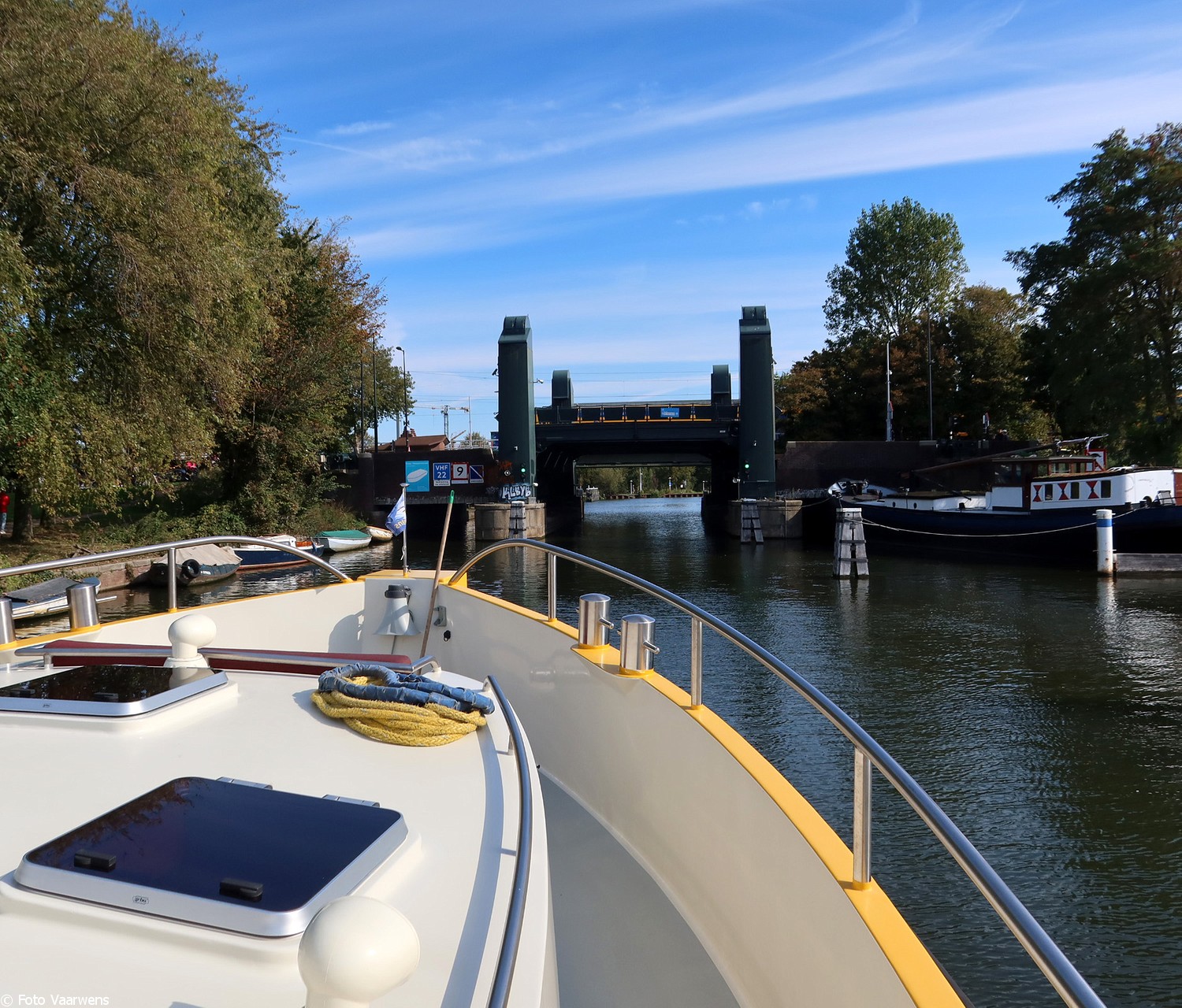 Uiteindelijk komen we al om half 1 aan bij de Berlagebrug. Daar besluiten we in plaats van om te keren om door te varen. Met 3 loodsen en stuurman Mees erbij gaan we daar wel uitkomen. We leggen het voor aan de brugwachters en er zijn geen belemmeringen te verwachten. Maar er is natuurlijk “No Way Back” tot 18.00 uur.