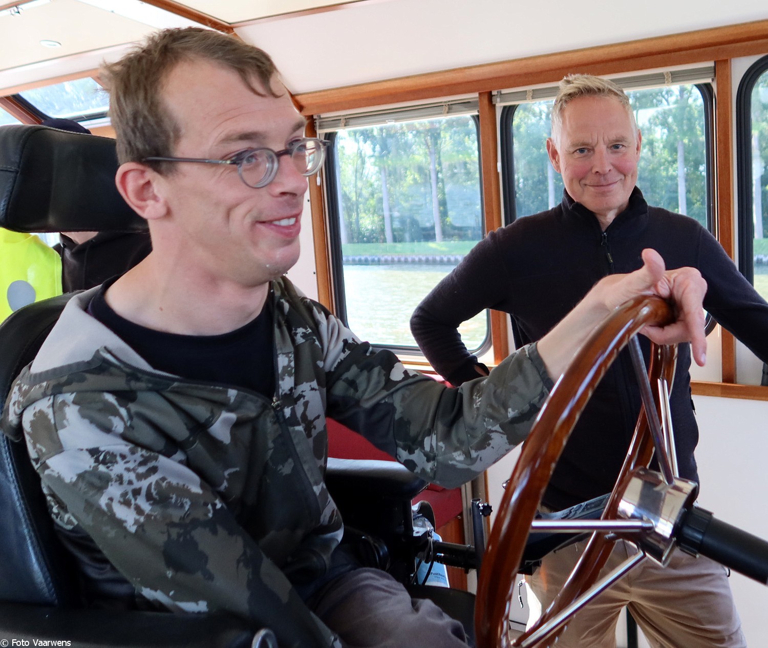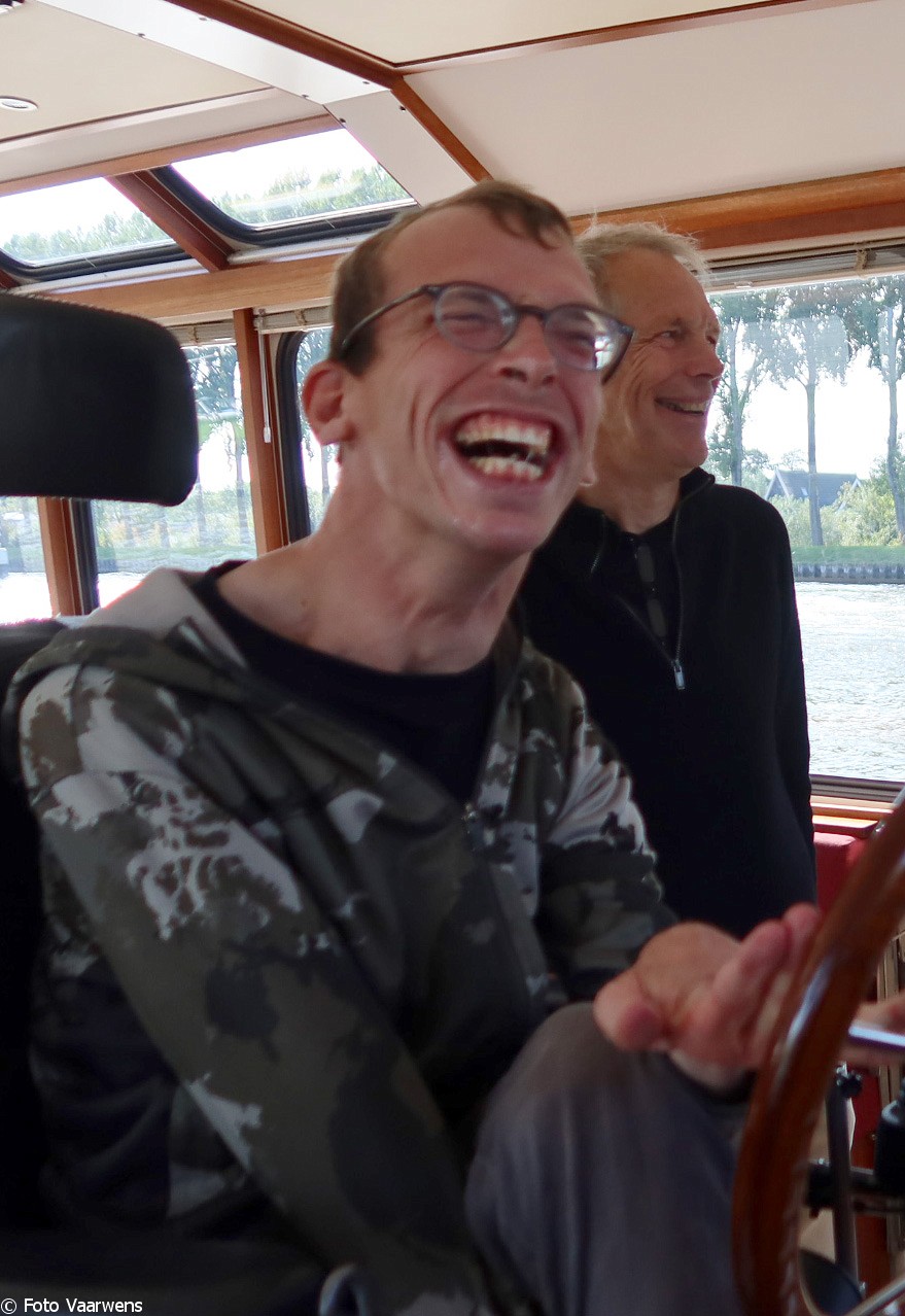 Onze vaargast vandaag is Mees (geb. 1990). Mees komt samen met zijn vader Fred, moeder Margreet, broer Meinko en oom Wytze de vaarwens maken. Mees is door zijn aandoening rolstoelgebonden waardoor hij extra ondersteuning nodig heeft bij zijn motoriek en zitbalans en ook het praten gaat moeilijk. Gelukkig heeft Mees wel zijn aangepaste elektrische rolstoel waar hij op de vierkante centimeter mee kan manoeuvreren, Mees is gek op varen en ging als klein jongetje al met zijn familie zeilen. Mees werd dan zeevast gezet in een hoekje van de boot en stuurde dan in een kaarsrechte lijn van A naar B. Dat ging toen nog want Mees was nog te tillen en zat nog niet vast aan zijn zware rolstoel. En het is vandaag wederom bewezen: Mees is een eersteklas stuurman!