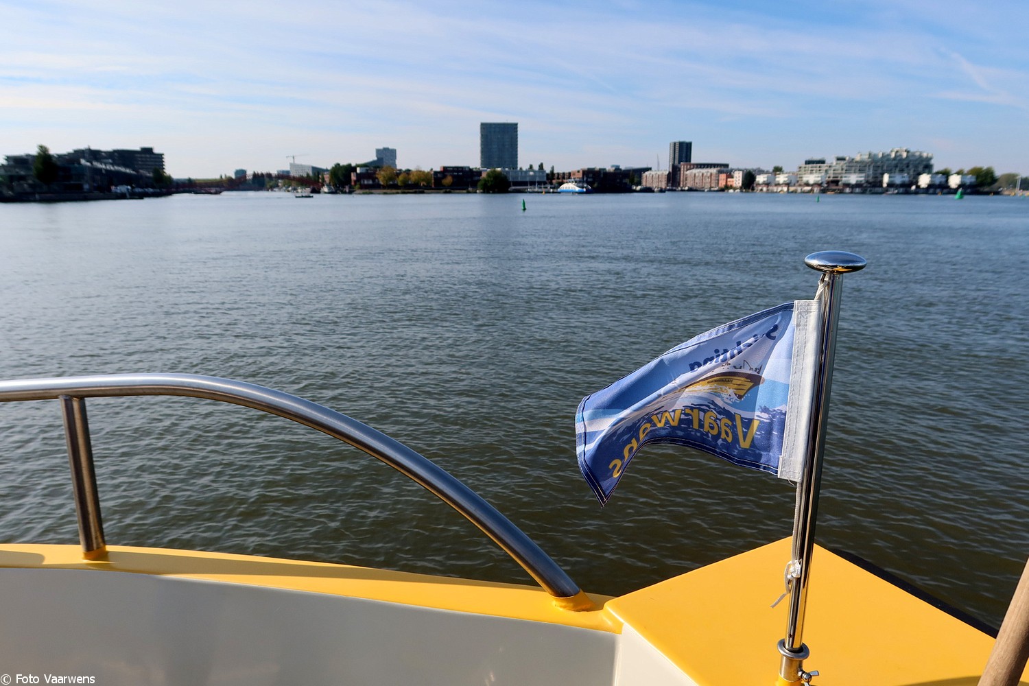 Rond half 3 draait de laatste brug van de dag voor ons bij Driemond waarna we het Amsterdam-Rijnkanaal opdraaien. Het is rustig op het kanaal en bijna spiegelglad. Met stuurman Mees achter het stuur varen we terug richting Amsterdam. Net voor de Amsterdamsebrug krijgen we nog we nog een rondje van de zaak van Mees, die wel toe was een bochtje draaien na bijna 9 km kanaal. We moeten er allemaal hartelijk om lachen. En als je dan toch vanaf de oostkant Amsterdam weer in komt mag ter afsluiting een rondje Nieuwendam natuurlijk niet ontbreken en evenmin de IJ-haven als daar een cruiseschip ligt afgemeerd. Vervolgens werd koers gezet naar de Amsterdam-Marina, waar we even na 4 uur arriveerden.