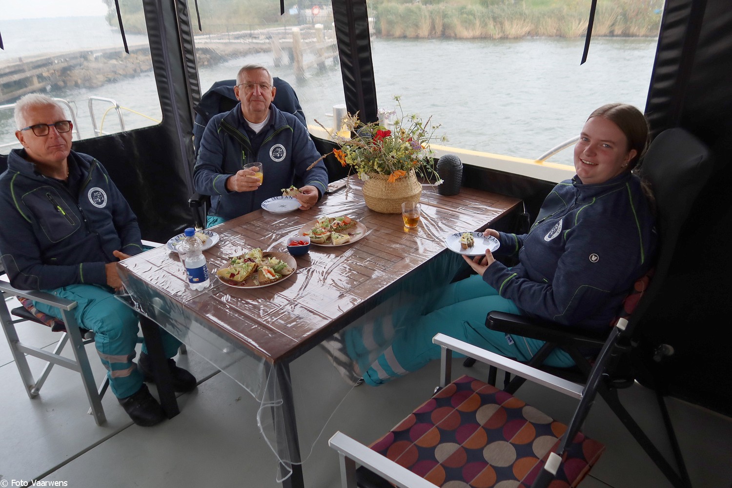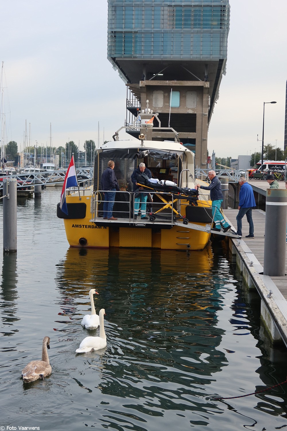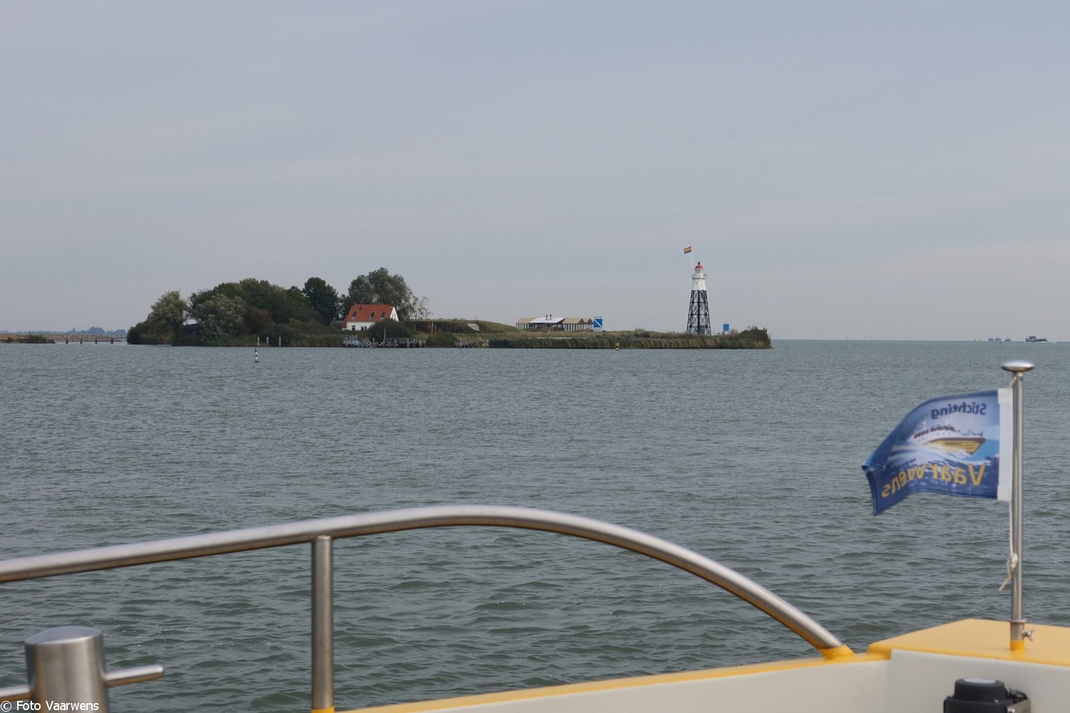 De WensenAmbulance Noord-Holland, met vrijwilligers Rosanne en Peter, verzorgt vandaag niet alleen het vervoer van Kees maar, vrijwilliger Aaldert, brengt ook de (achter)kleinkinderen met een personenwagen naar de Marina. Chapeau! Als varensgezel loopt Kees direct de tent door het schip binnen om daar voorlopig niet meer weg te gaan. Na kennismaking en uitwisseling van wetenswaardigheden over de Vaarwens en van onze gasten, valt al snel keuze op een bezoek aan Pampus. Zijn we nog nooit geweest! De trossen kunnen los.