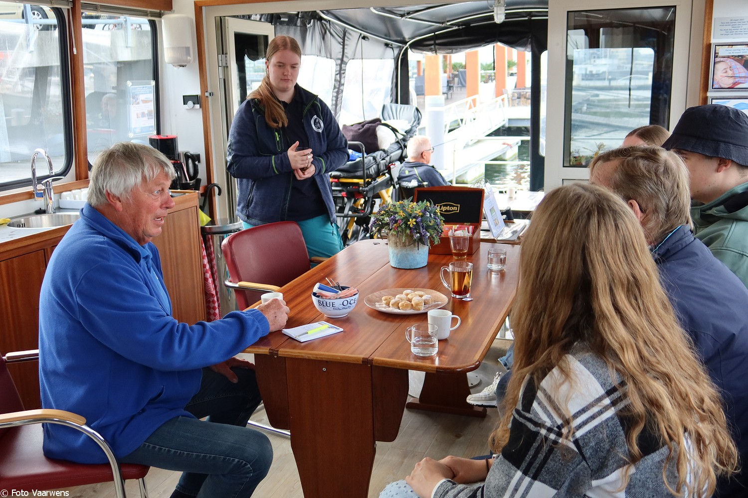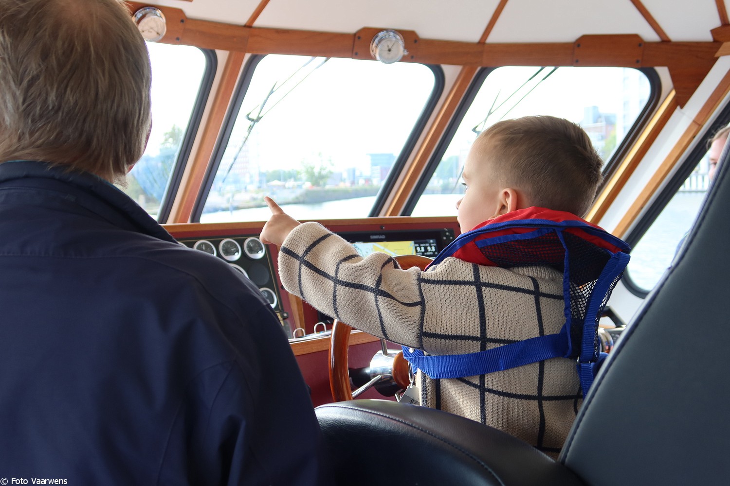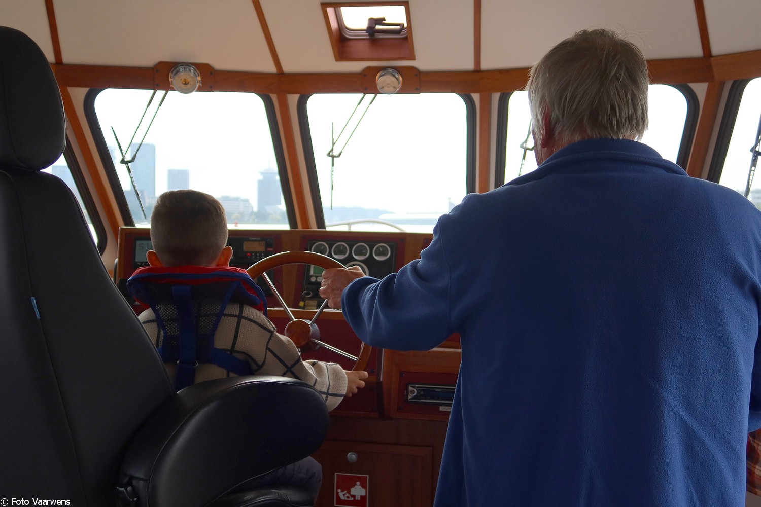 Kees (73), varen was en is tot op de dag van vandaag zijn leven. Als broekie begonnen bij de Koninklijke Marine (KM), na zijn vroege FLO (functioneel leeftijd ontslag), (zeil)schepen weg- en thuisgebracht en ook bij de Explosieve Opruimingsdienst (afdeling KM) veel op het water gebivakkeerd. Vandaag geniet hij met zijn kleindochters Nina en Gaby, kleinzoon Bram en achterkleinzoon Mason (4) van een trip op open water met de Vaarwens.