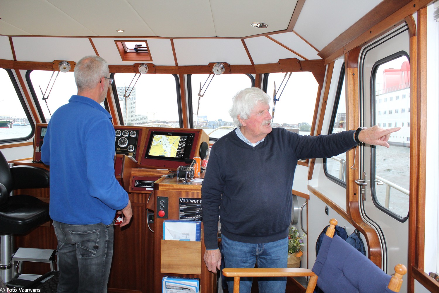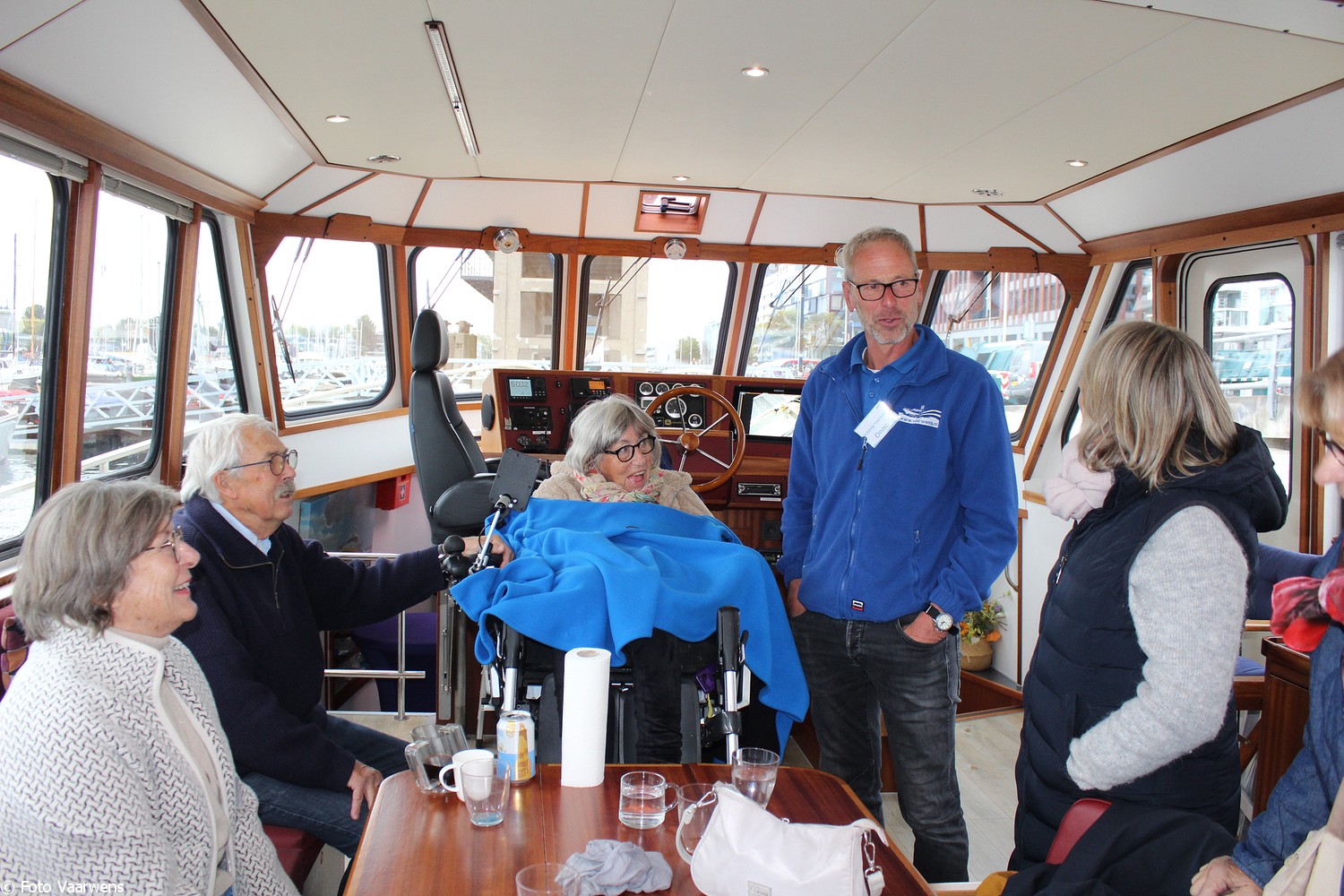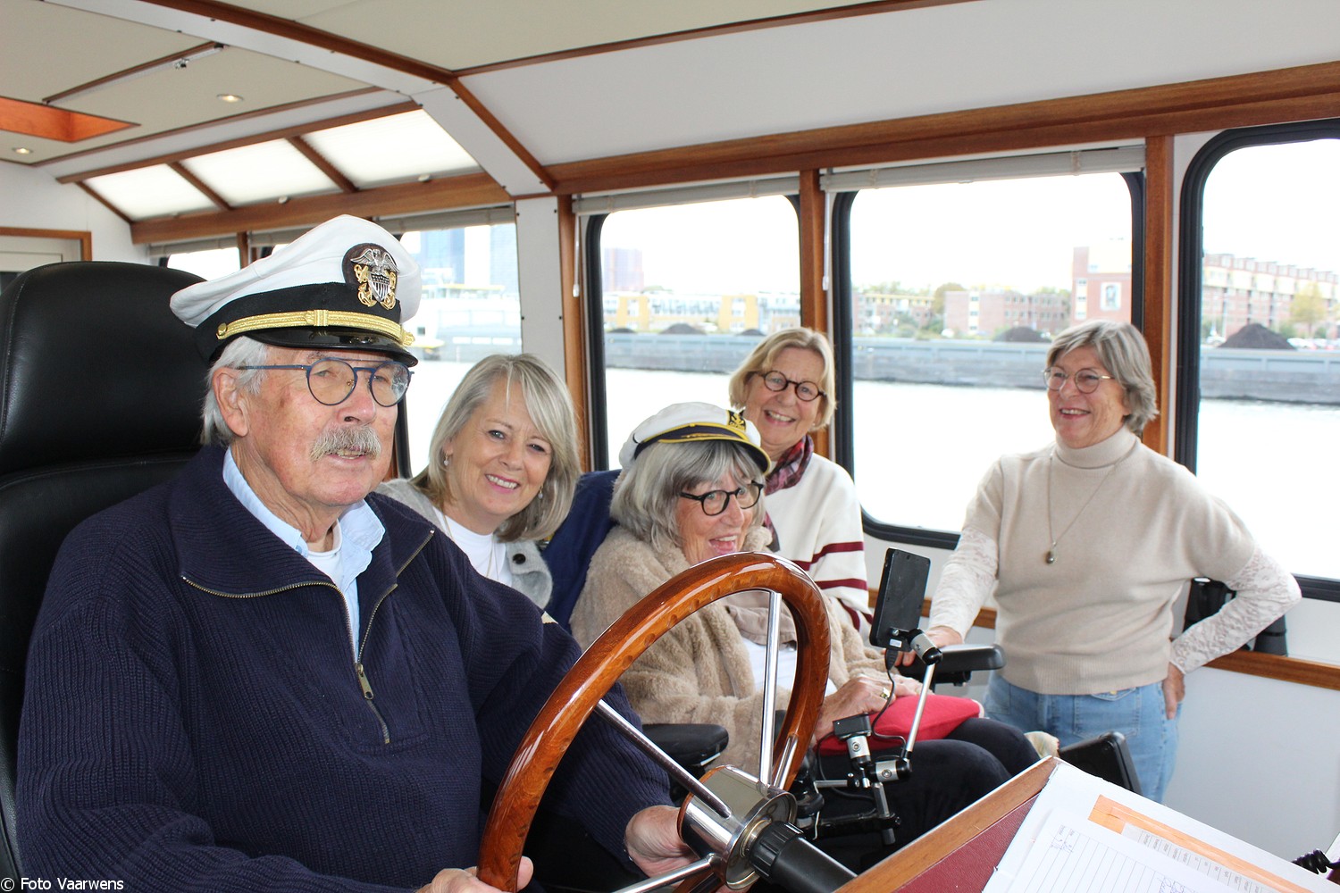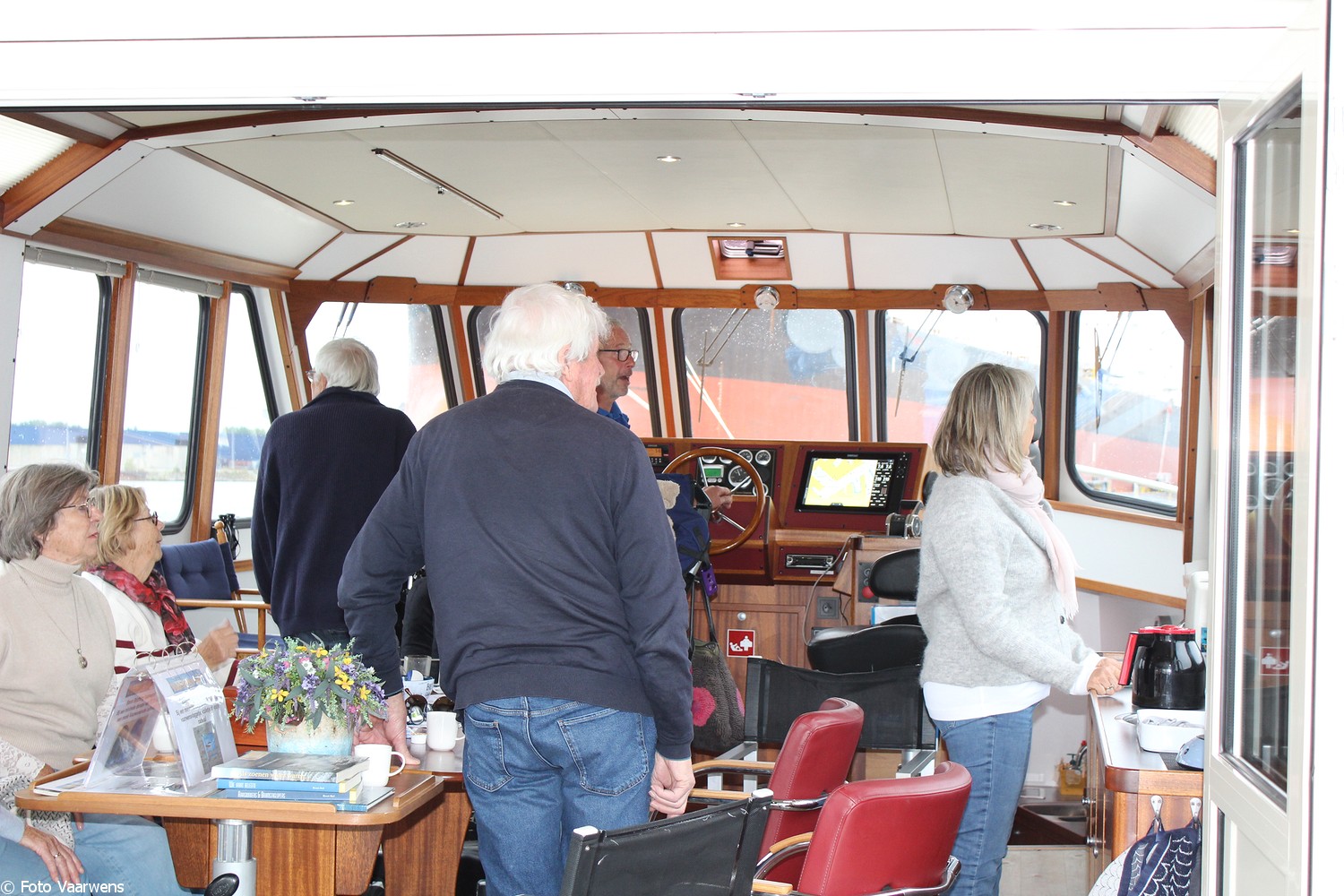 Als iedereen zich om de tafel in de salon heeft geschaard laten we ons de warme drank, koek-en-soes etc. die Riekie ons aanbiedt welgevallen. De hamvraag is natuurlijk waar de reis van vandaag ons zal brengen…Vanwege onderhoud aan de bruggen is de Amstel geen optie, vanwege de verwachte wind zou de oversteek naar Pampus wel eens wat onstuimig kunnen worden... De Zaanse Schans misschien? Of naar IJmuiden? Als de Amsterdamse havens en Durgerdam ter sprake komen zegt de blik van Lyd ons meteen al meer dan genoeg: Dát gaat ‘m worden!