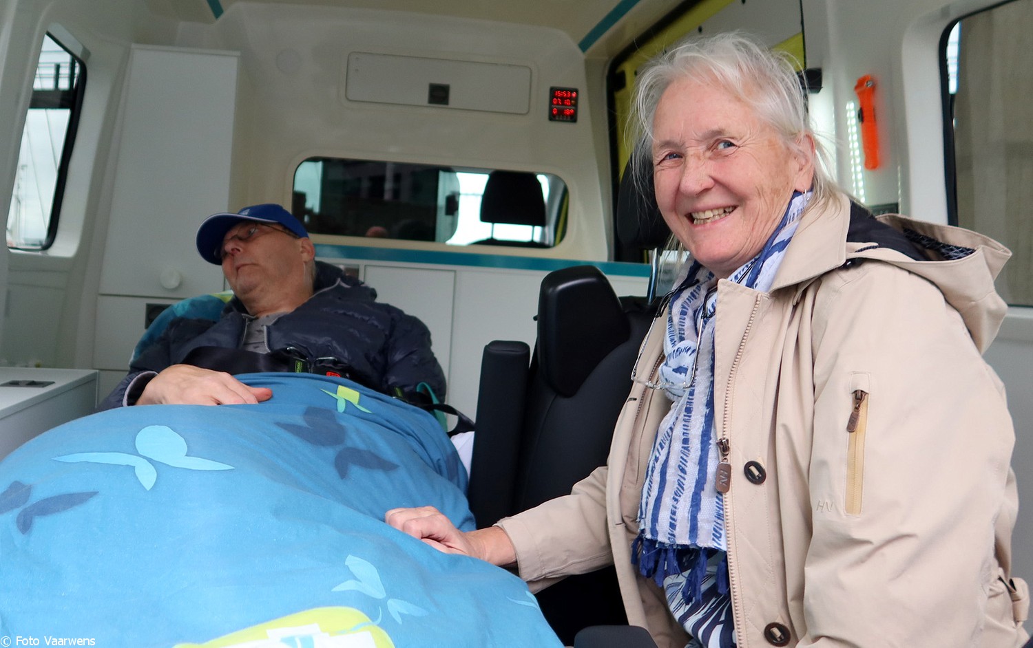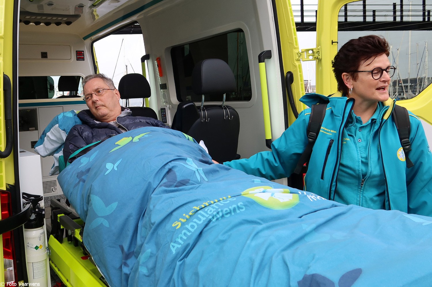 We naderen de klok van 16:00 uur en de koek is op bij Teun. Dus snel naar de Marina waar de familie met de SAW naar huis terugkeert. Teun heeft mazzel want de allernieuwste ambulance van de SAW staat al klaar. Wat een fijne organisatie met zulke fijne vrijwilligers!