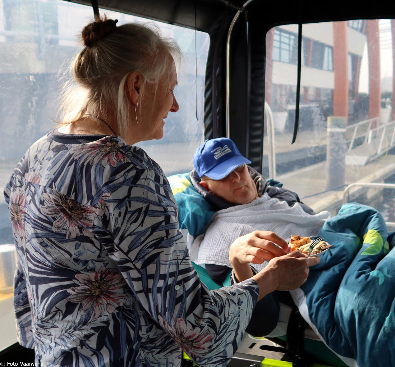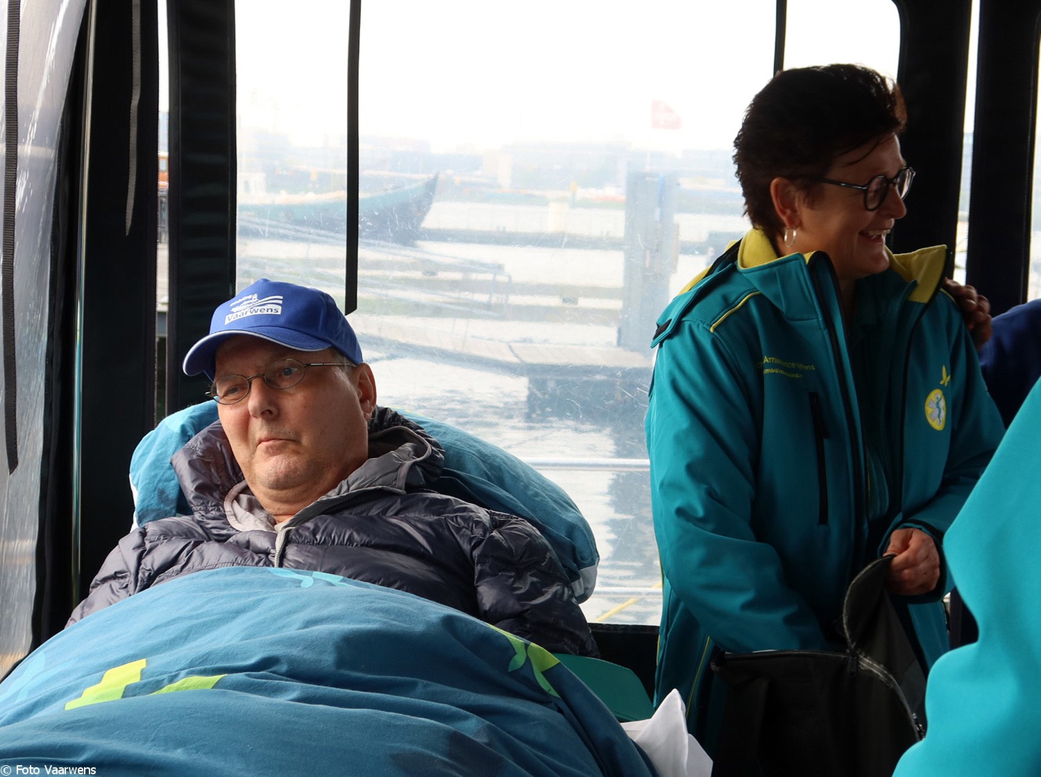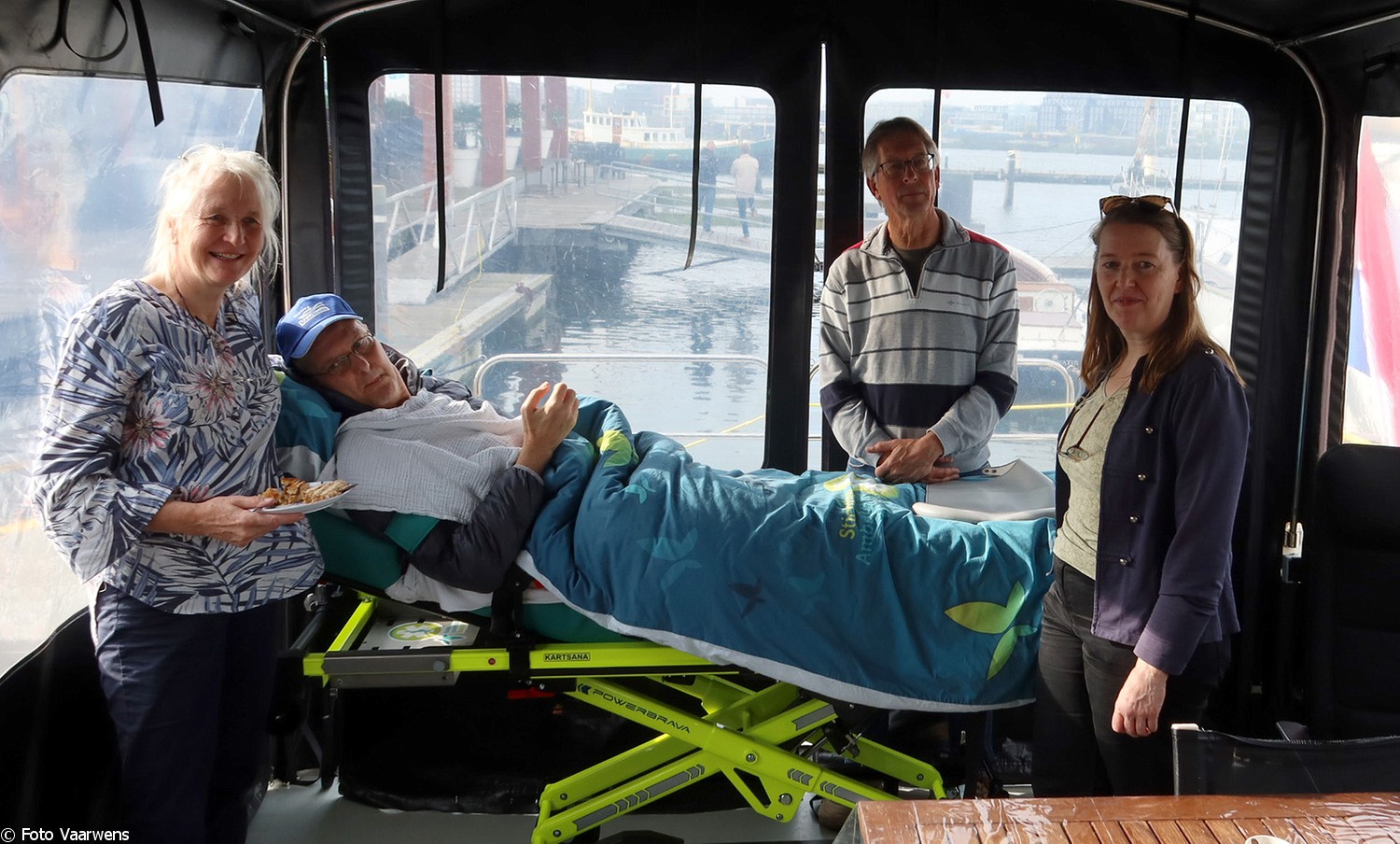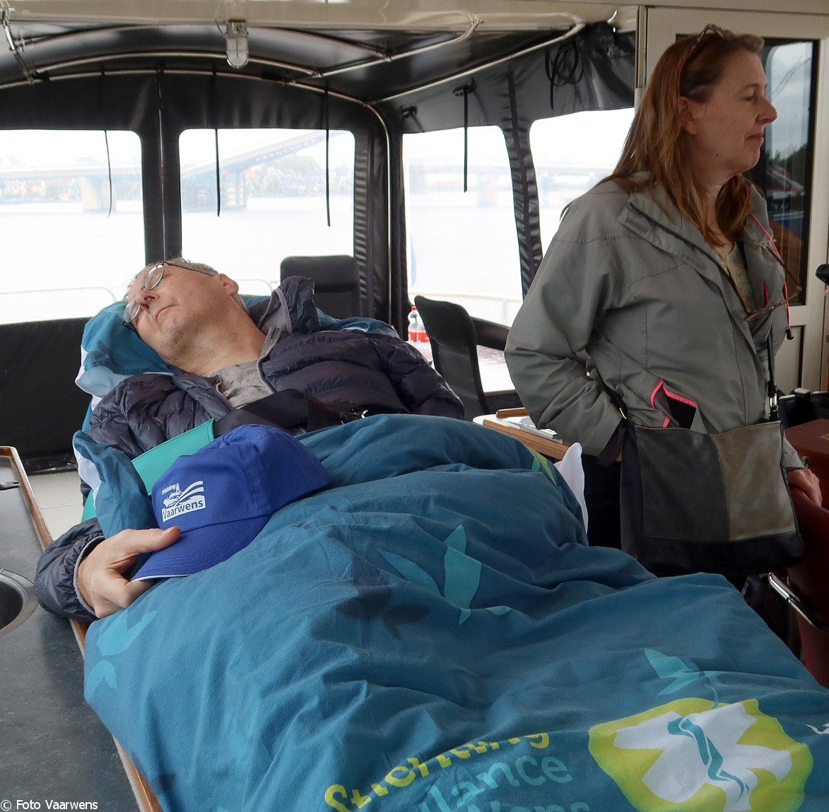 Teun heeft hetzelfde bouwjaar als ik. Alleen mag ik schipperen voor Teun die al een lang ziekbed achter de kiezen heeft. Je hebt het niet voor het uitkiezen. Vanaf begin augustus is Teun niet meer uit bed geweest en dat liggen valt hem zwaar. Volledig links verlamd dus moeten we de Vaarwens ombouwen zodat Teun toch een mooi uitzicht heeft.