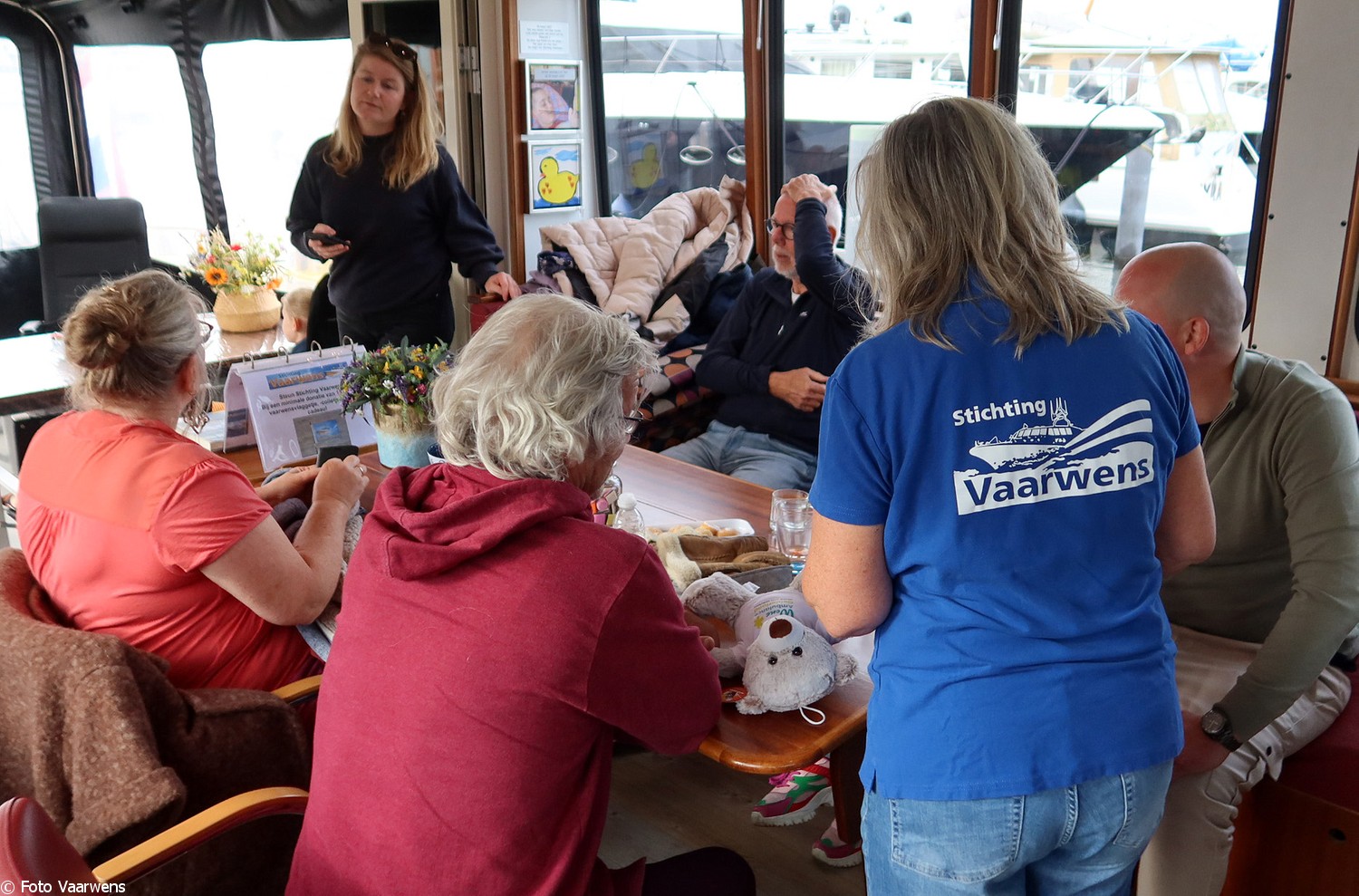 Vanaf het allereerste moment dat we door Nicolette en Ben van de Wensambulance werden opgehaald, was deze dag een warm bad van liefdevolle zorg. Aleid en Ton kwamen ons bij aankomst op de kade al tegemoet en eenmaal binnen waren we snel onderweg met een kopje koffie/thee en wat lekkers. Het was een heel mooie vaart, de sfeer was bijzonder prettig, de catering was geweldig, onze kleindochters werden als kleine blije matrozen overal bij betrokken, een boeiende uitleg bij Houtzaagmolen Het Jonge Schaap.....wat een bijzondere dag en fijn samenzijn met dierbaren.