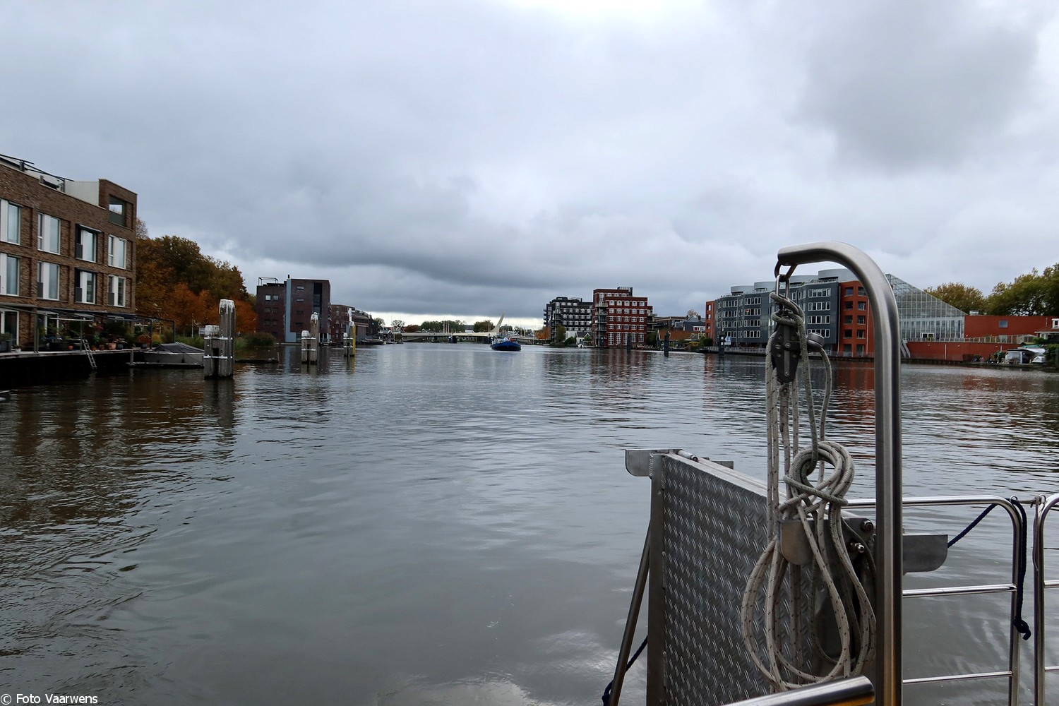Via het zijkanaal H waar we naar binnen gluren bij alle woonarken en ondertussen de inrichting bespreken komen we, met het laatste kwartier wat spetters regen, moe maar voldaan aan in de Marina Amsterdam. Het was een dag om nooit te vergeten.