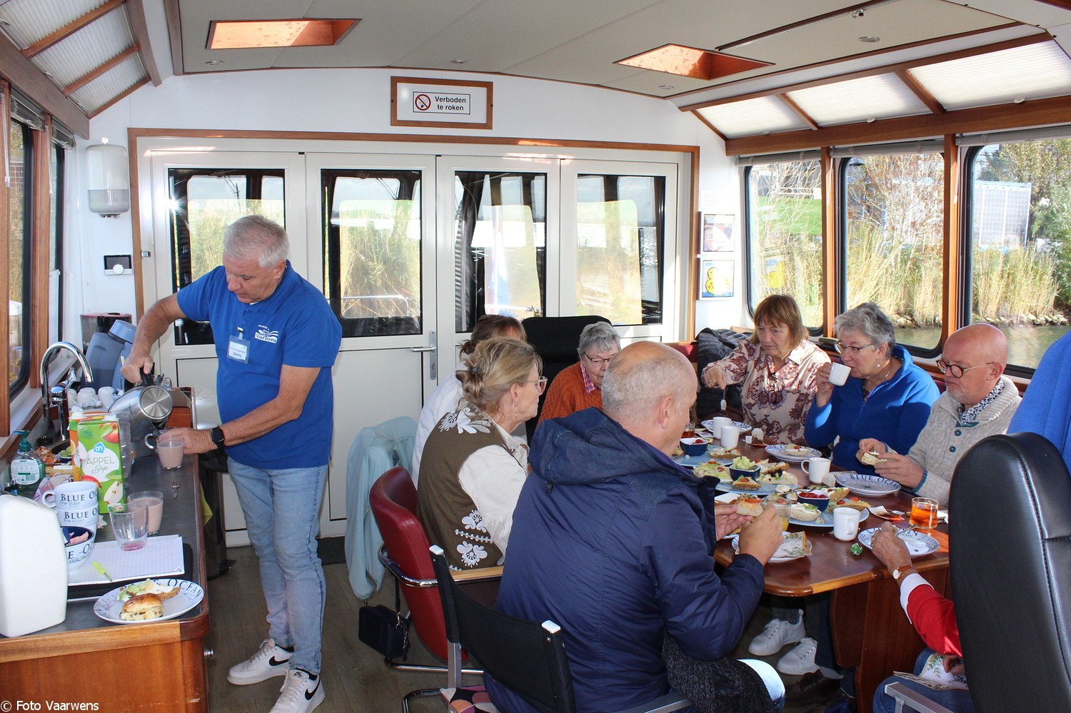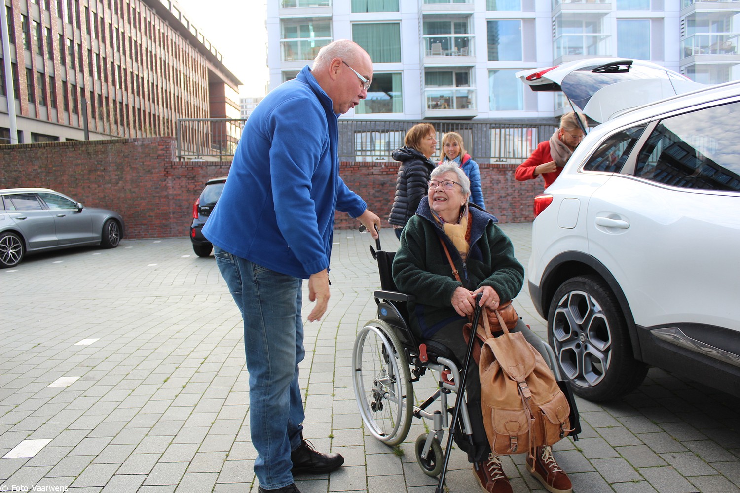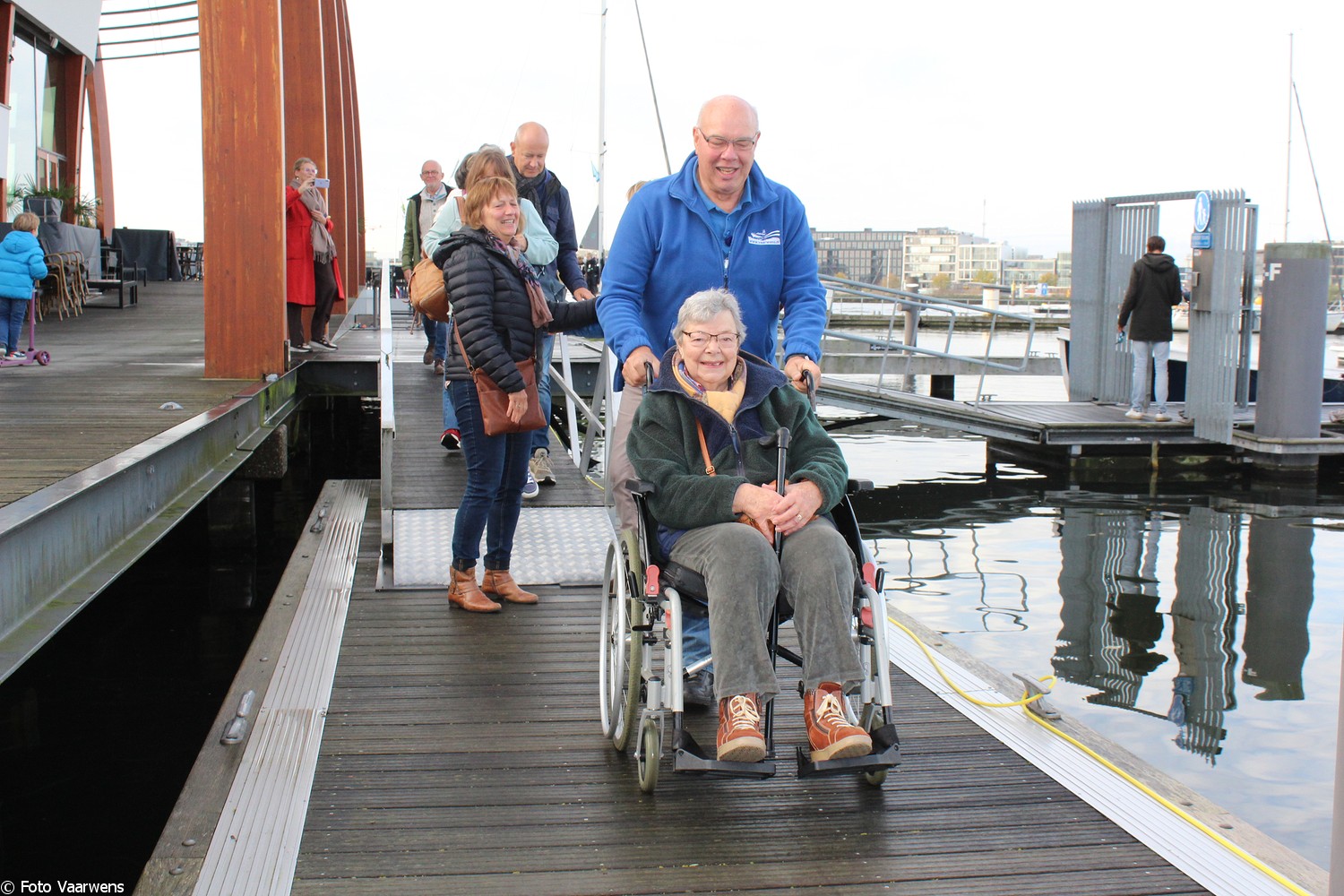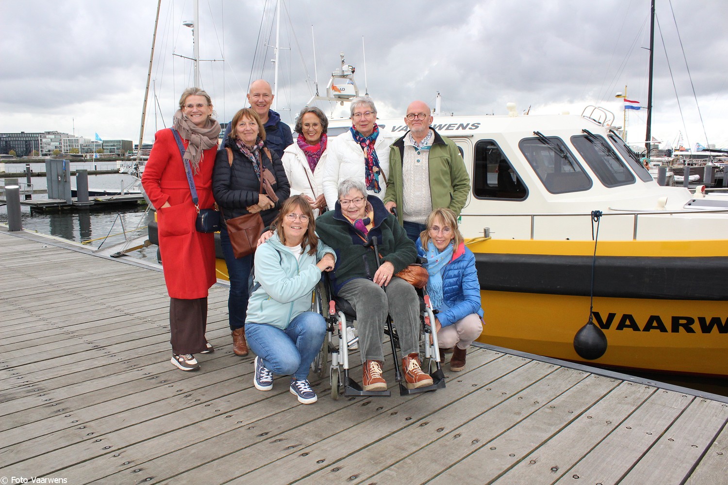 Met de rolstoel werd Marg door boots Danny en schipper Marcel bij de parkeerplaats opgehaald en de Vaarwens in gereden. Marg had een lieve vriendengroep meegenomen die veel voor haar betekenen; Trea, Jenny, Annemieke, Francien, Erik, Anneke en Yvonne (nichtje) en partner Brian.