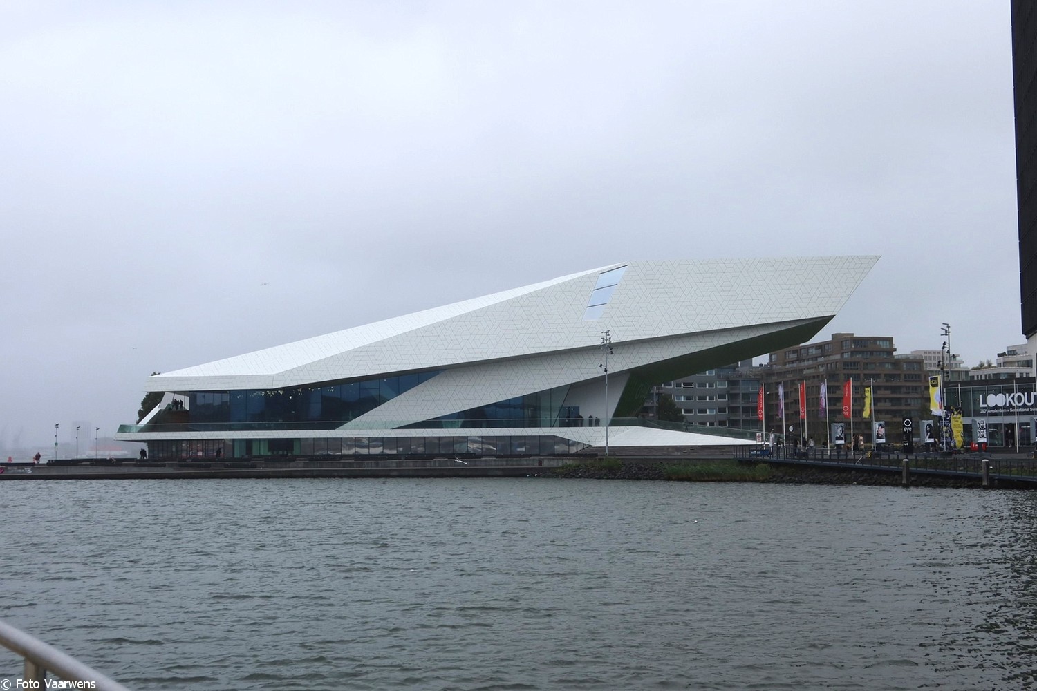 We passeren de noordelijke IJ-oevers, kijken naar boven naar de schommels en zijn blij dat we op de boot zitten en niet daar in de lucht hangen. Inmiddels is het ook wat gaan regenen en zien we allerlei flarden nevels langskomen. Even de neus buiten de deur leert ons dat de temperatuur flink is gedaald en dat die heiigheid een overgang van warm naar koud aan geeft. De wind, nu zuidoost valt bijna helemaal weg en het wachten is op Benjamin.