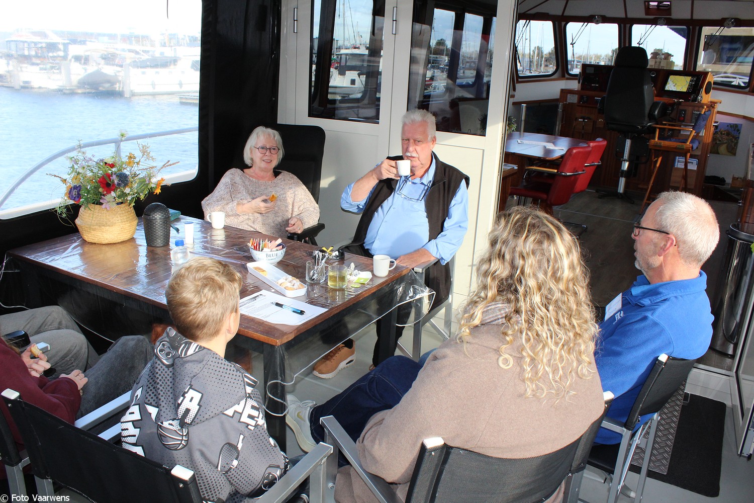 Onze gasten van vandaag zullen wat later dan gebruikelijk komen, zij hebben namelijk heel wat kilometers te gaan vanuit Kapelle (Zuid-Beveland). Maar dan gaat de scheepstelefoon: “we zijn er bijna”! Een half uur eerder dan verwacht hebben we de boel nèt klaar voor ontvangst dus dat komt mooi uit.