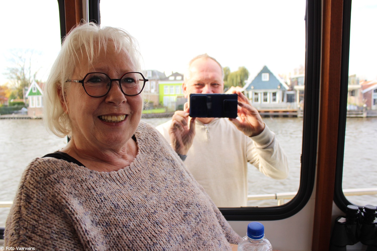 Jeannette heeft een zeevaartachtergrond; haar vader was werkzaam bij de Holland Amerika Lijn en zo is zij vroeger aan boord geweest van de fameuze schepen! Over het reisdoel van vandaag bestaat geen twijfel: Het wordt de Zaanse Schans! De trossen gaan los en om 11h15 draaien we het Noordzeekanaal op.
