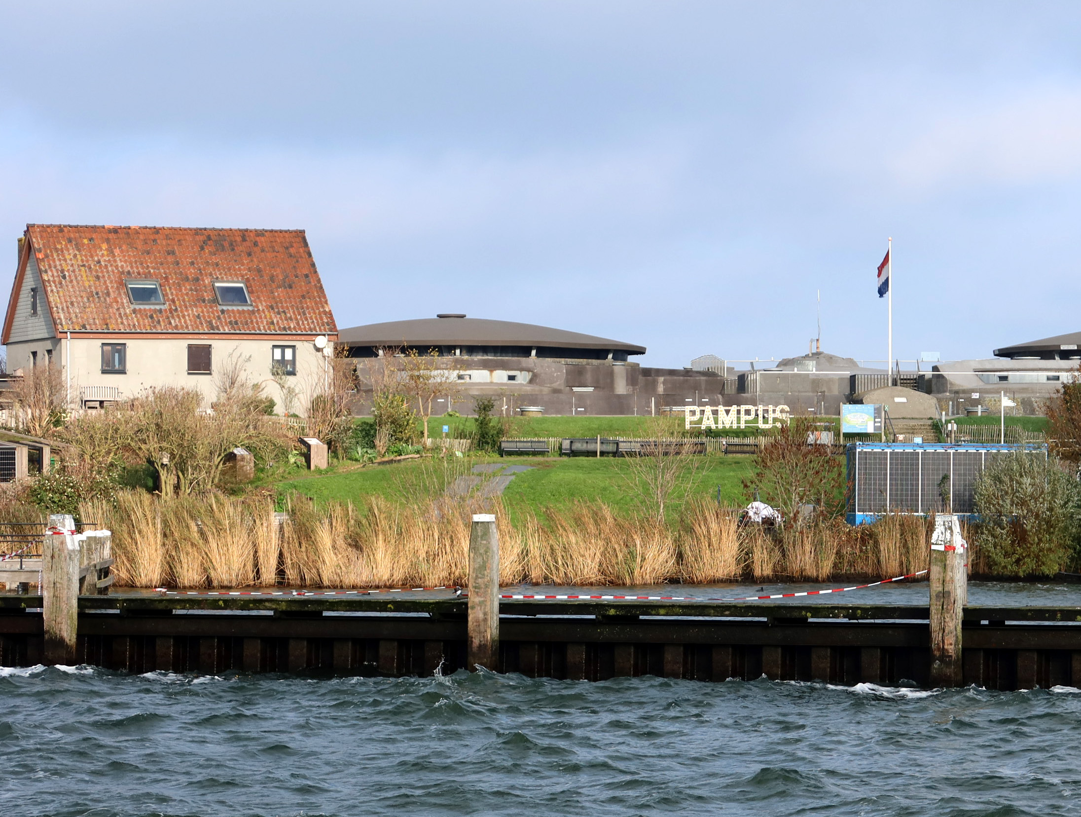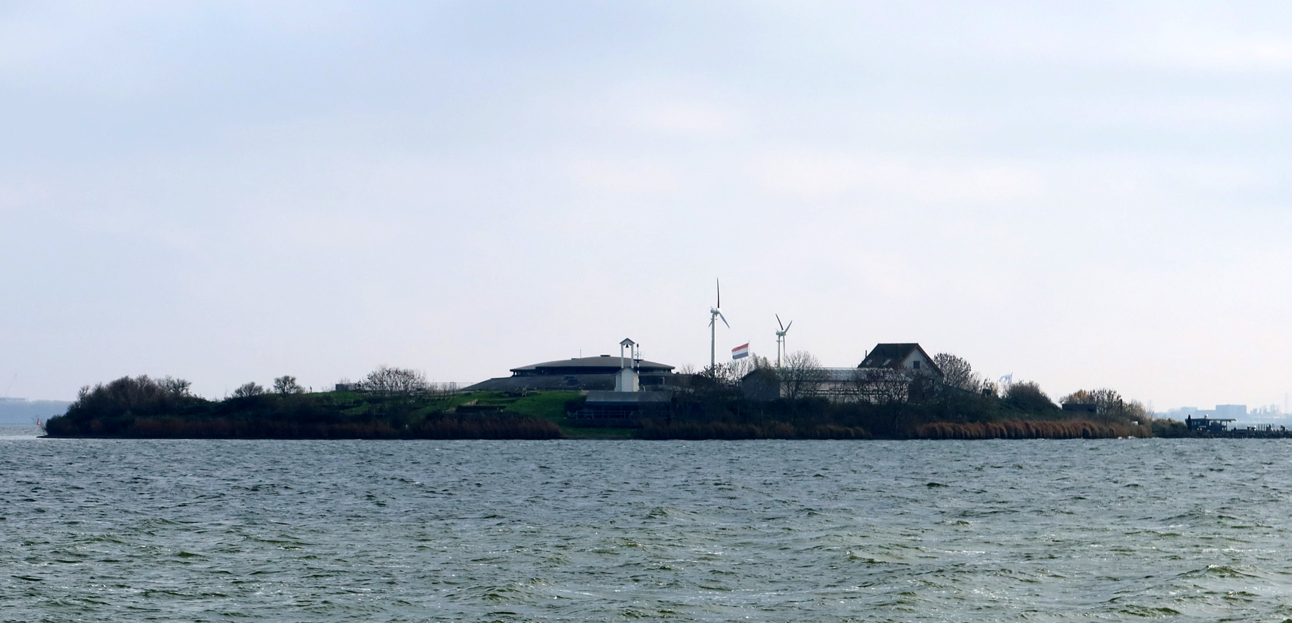 Forteiland Pampus voor de aanlegplaats tijdens de lunch