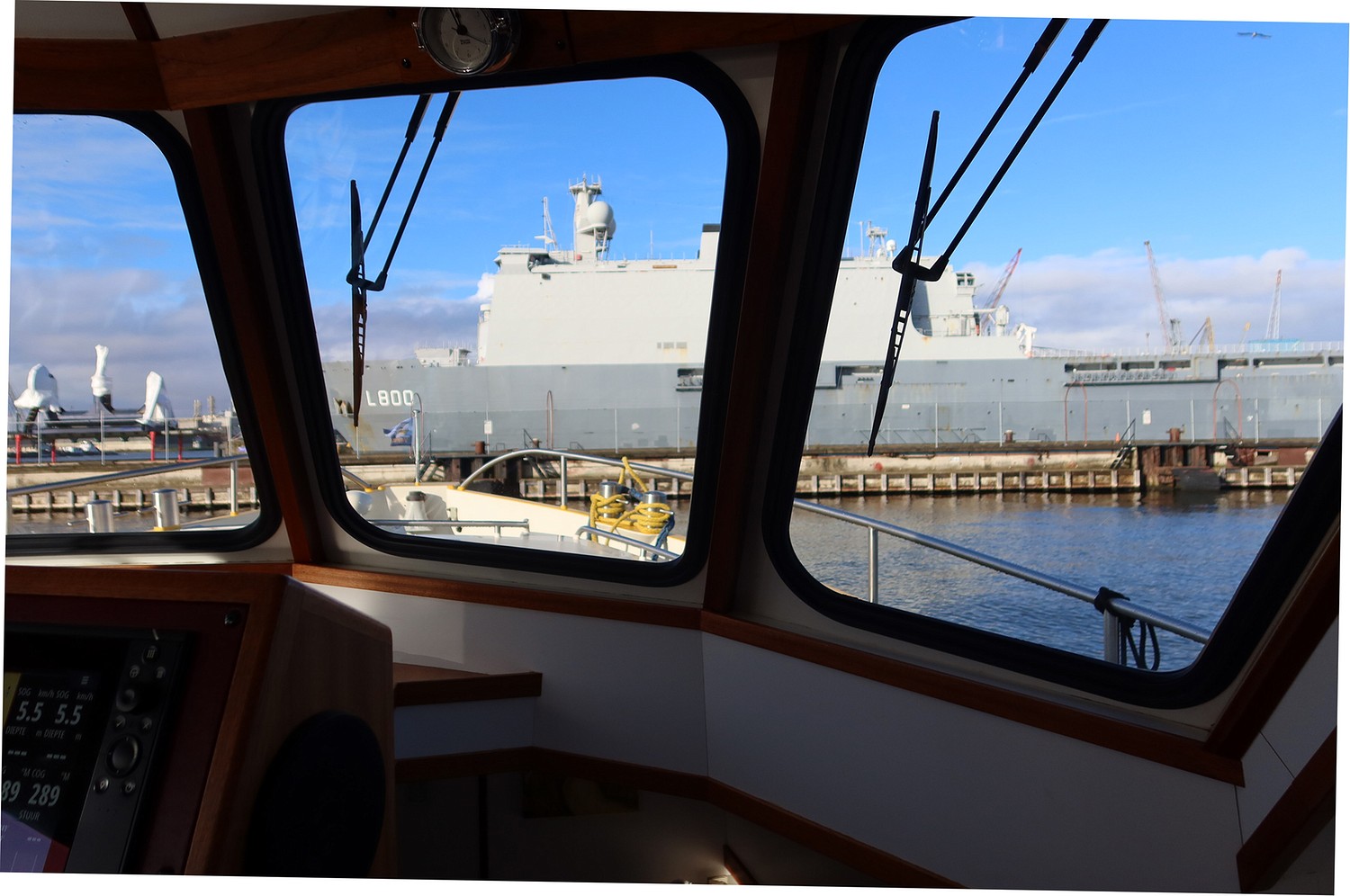 Bij aankomst in de haven halen we Bram op met de rolstoel en brengen hem naar de boot, op de boot wil Bram gelijk naast de schipper zitten om niets te missen van wat er allemaal besproken wordt.