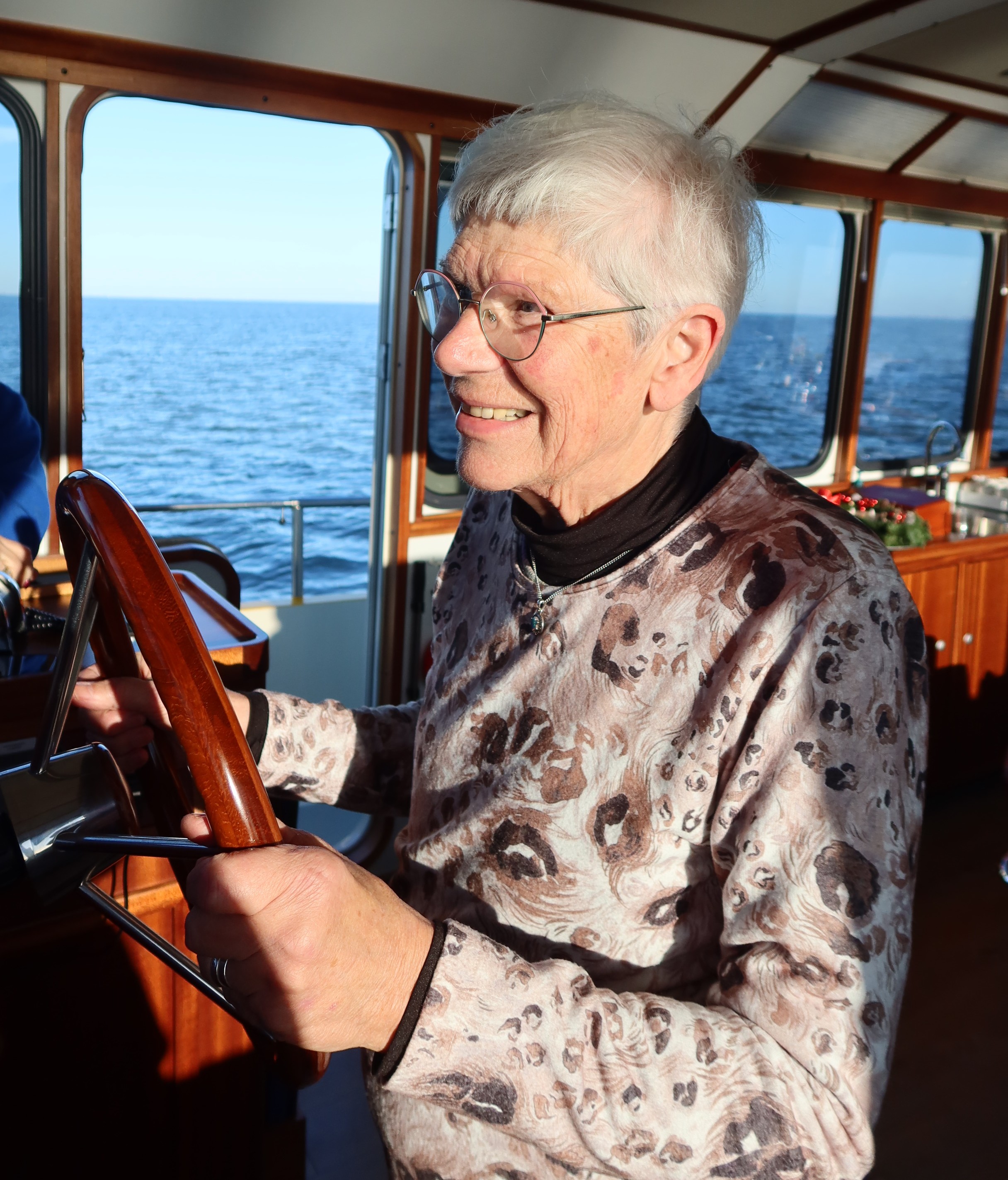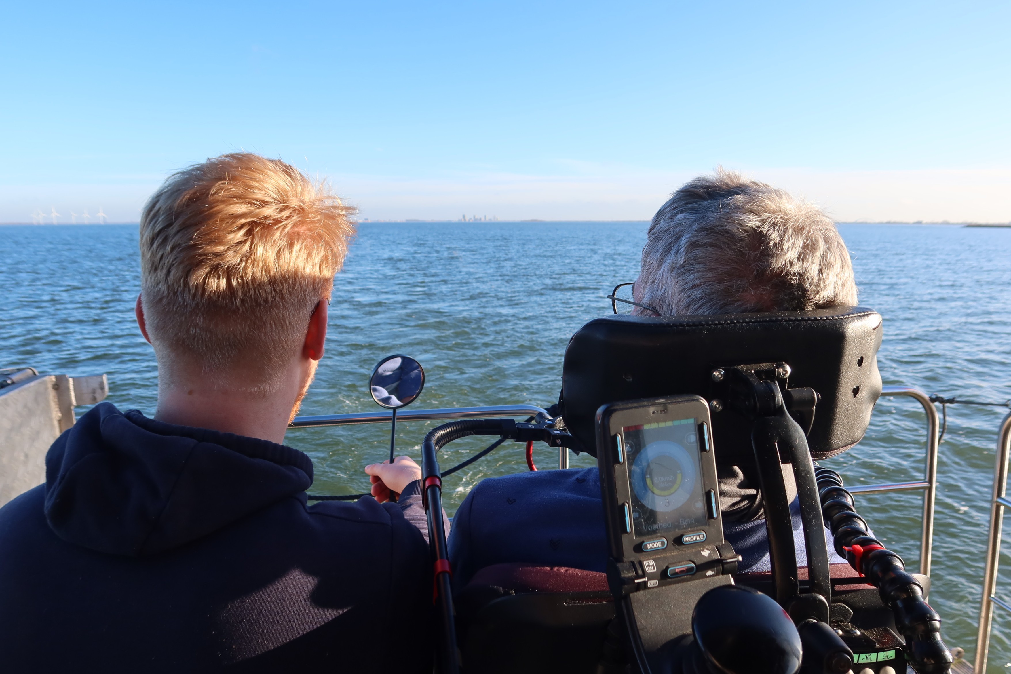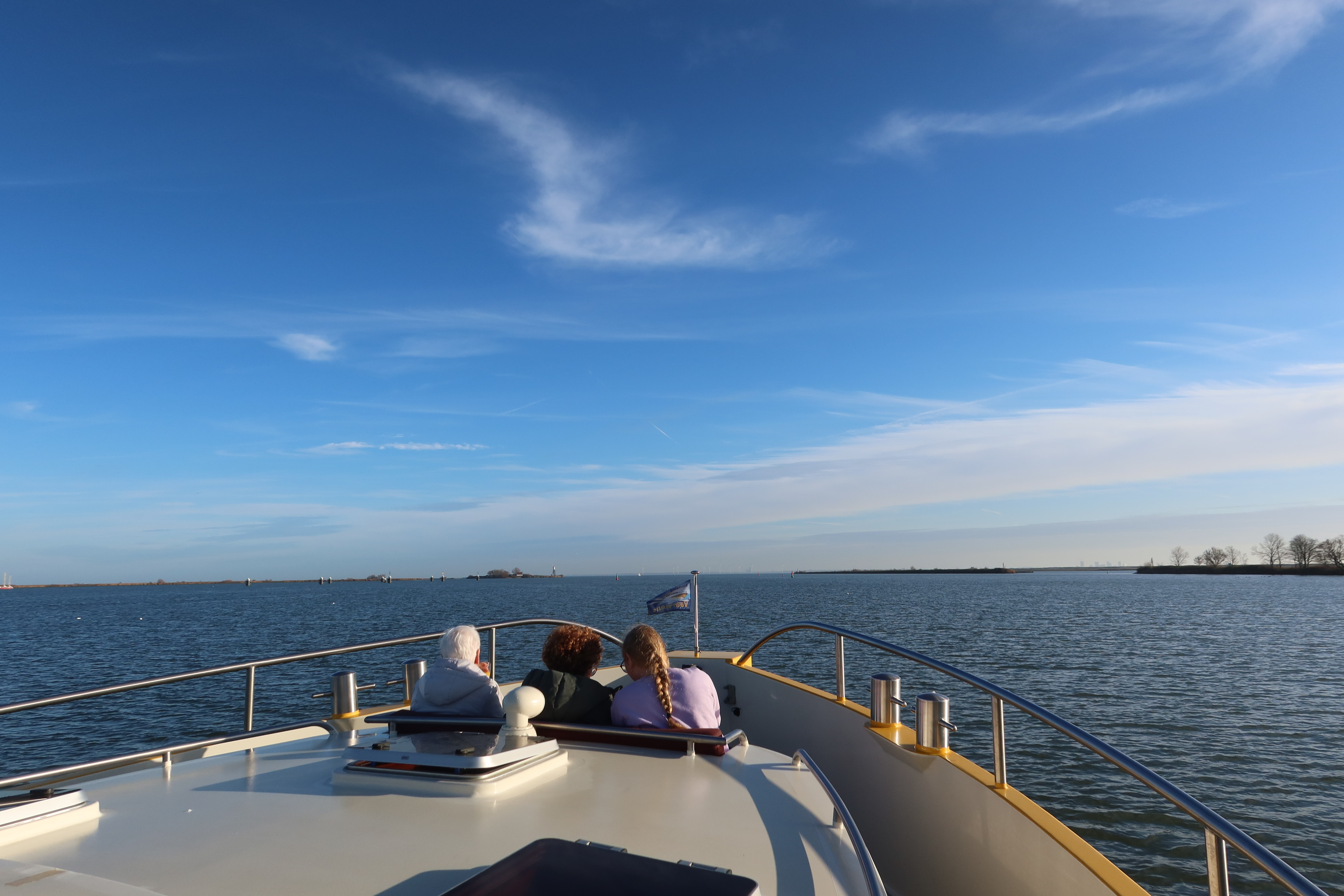 De aanvraag voor deze vaardag was gedaan door Geerts vriend Diederick, zelf een watersporter en bekend met onze stichting. Hoewel het gezin zichzelf omschreef als "niet echt watersporters" en ze blanco de dag in stapten, was de verrassing groot. Een beetje onwennig en, zoals Barbara aan het einde van de dag eerlijk zei, een beetje gestrest over alle logistiek, stapten ze aan boord. Maar zodra de trossen los gingen, viel er een rust over het gezelschap. De stad toonde zich van haar mooiste kant in de winterzon. Voor het gezin was het een hele nieuwe ervaring om onze hoofdstad eens vanaf het water te zien, weg van de drukte, varend over het prachtige IJ. Ook dochters Naomi (student Pedagogisch Werk) en Emma (die in het voorlaatste jaar van de middelbare school zit) genoten zichtbaar van de dag, en namen zelfs even het roer in handen, net als hun Oma Lies, die ook een prachtig stuk zelf gevaren heeft. Ook Geert, die ondanks zijn ziekte nog lang heeft doorgewerkt in de ICT bij een GGZ-instelling, genoot met volle teugen. Zijn wereld is door de ziekte kleiner geworden en spreken is zijn belangrijkste communicatiemiddel; vandaag was er alle ruimte voor dat gesprek.