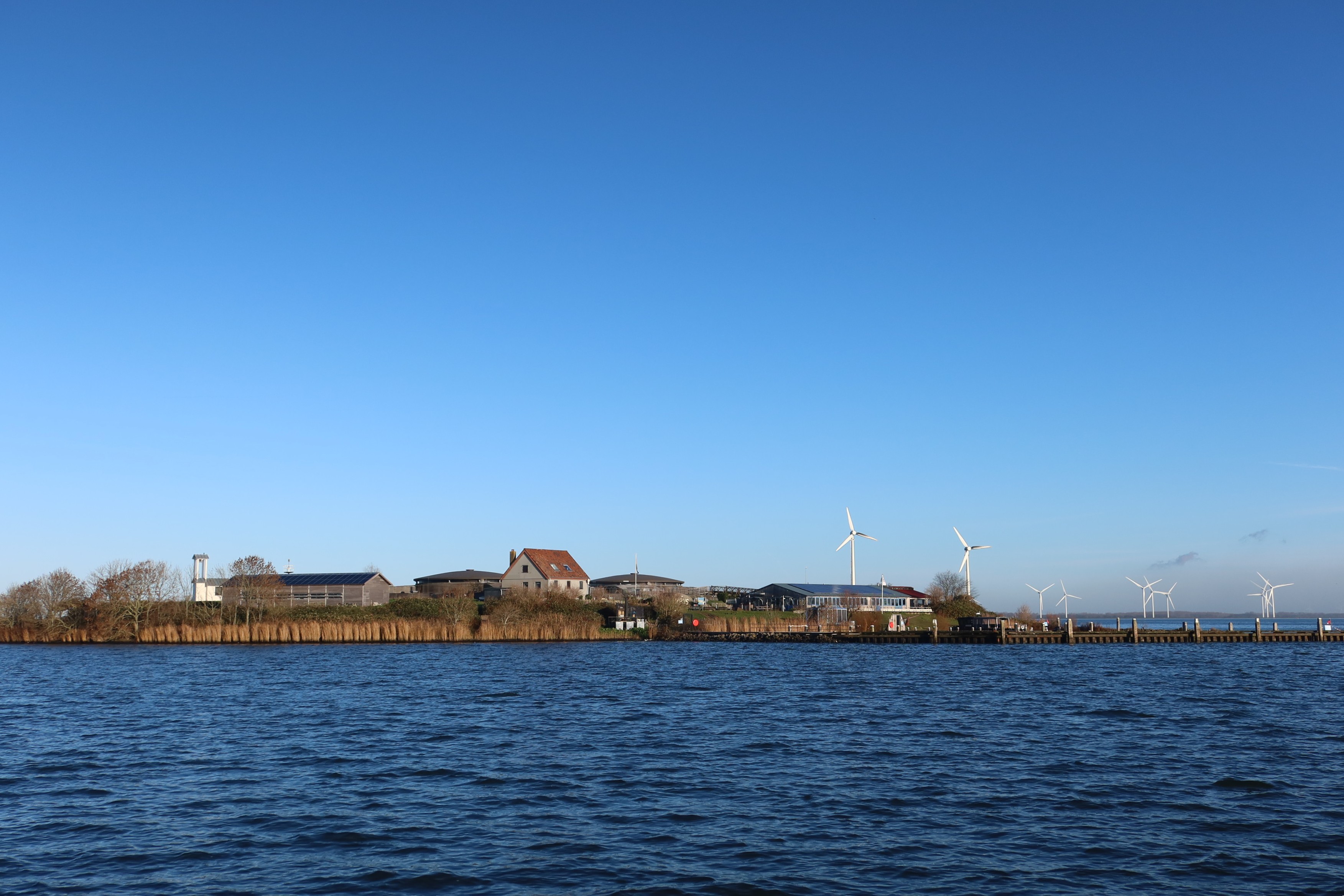De tocht ging verder richting het Markermeer. Nadat we Durgerdam voorbij waren, voeren we over vlak water naar het eiland Pampus. Aan boord werden de gasten volledig in de watten gelegd door Thea. Als boots zorgde zij er met haar fijne en warme aanwezigheid voor dat het de groep aan niets ontbrak, zodat zij zich volledig op elkaar konden richten. Ondertussen vertelde René, de ervaren schipper, prachtige verhalen aan de groep. Bijvoorbeeld over zijn ervaringen met het ‘voor Pampus liggen’ op de VOC-replica de Batavia en de protesttocht met hetzelfde thema van de bruine vloot tijdens corona. Ik wil René hierbij ook speciaal bedanken voor zijn tips; als ervaren rot in het vak heeft hij mij vandaag weer veel fijne kneepjes van het varen bijgebracht. Op Pampus hebben we aangelegd voor een uitgebreide lunch, verzorgd door de medewerkers van de Hema. Het was een moment van samenzijn, lekker eten en even nergens aan hoeven denken.