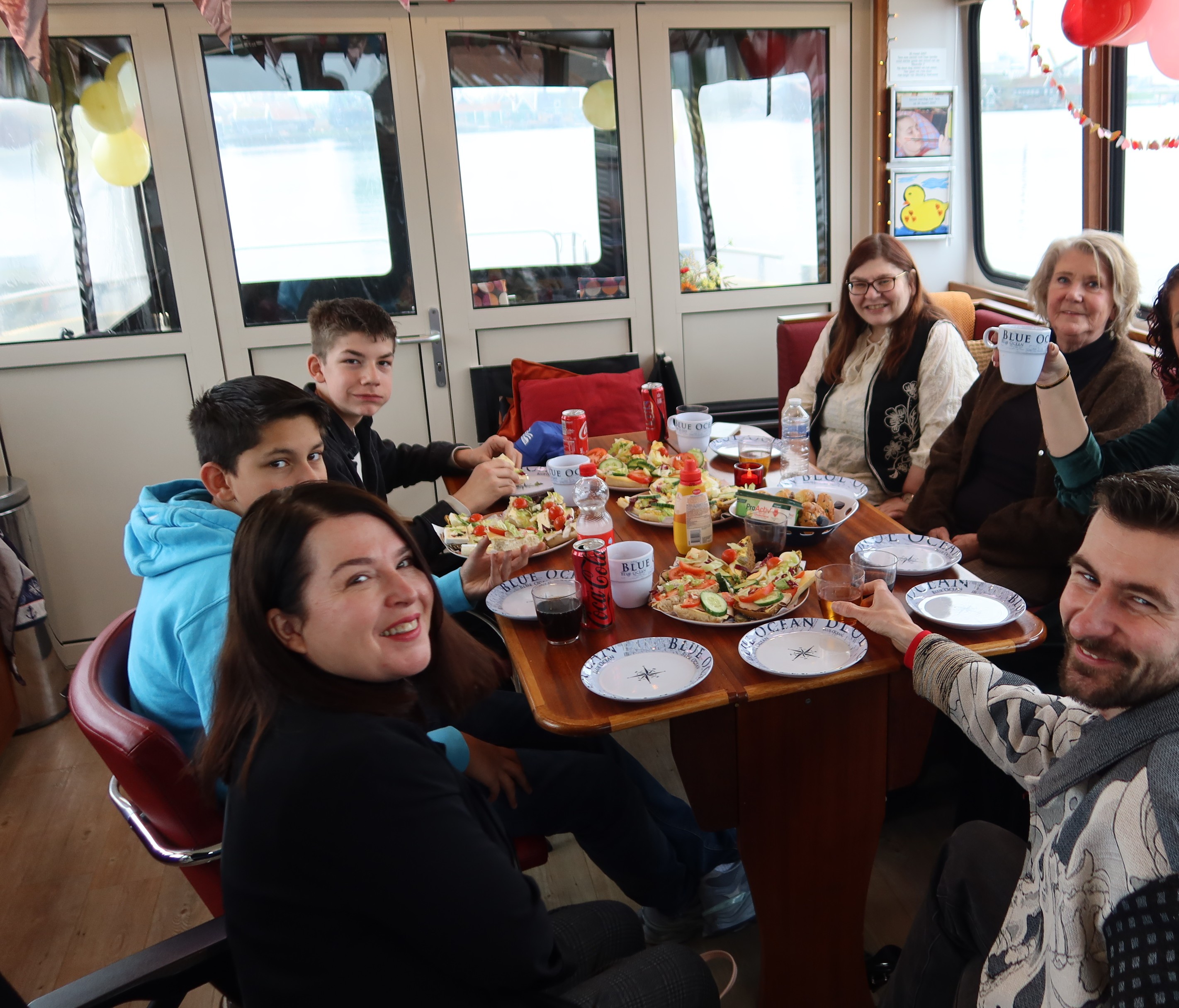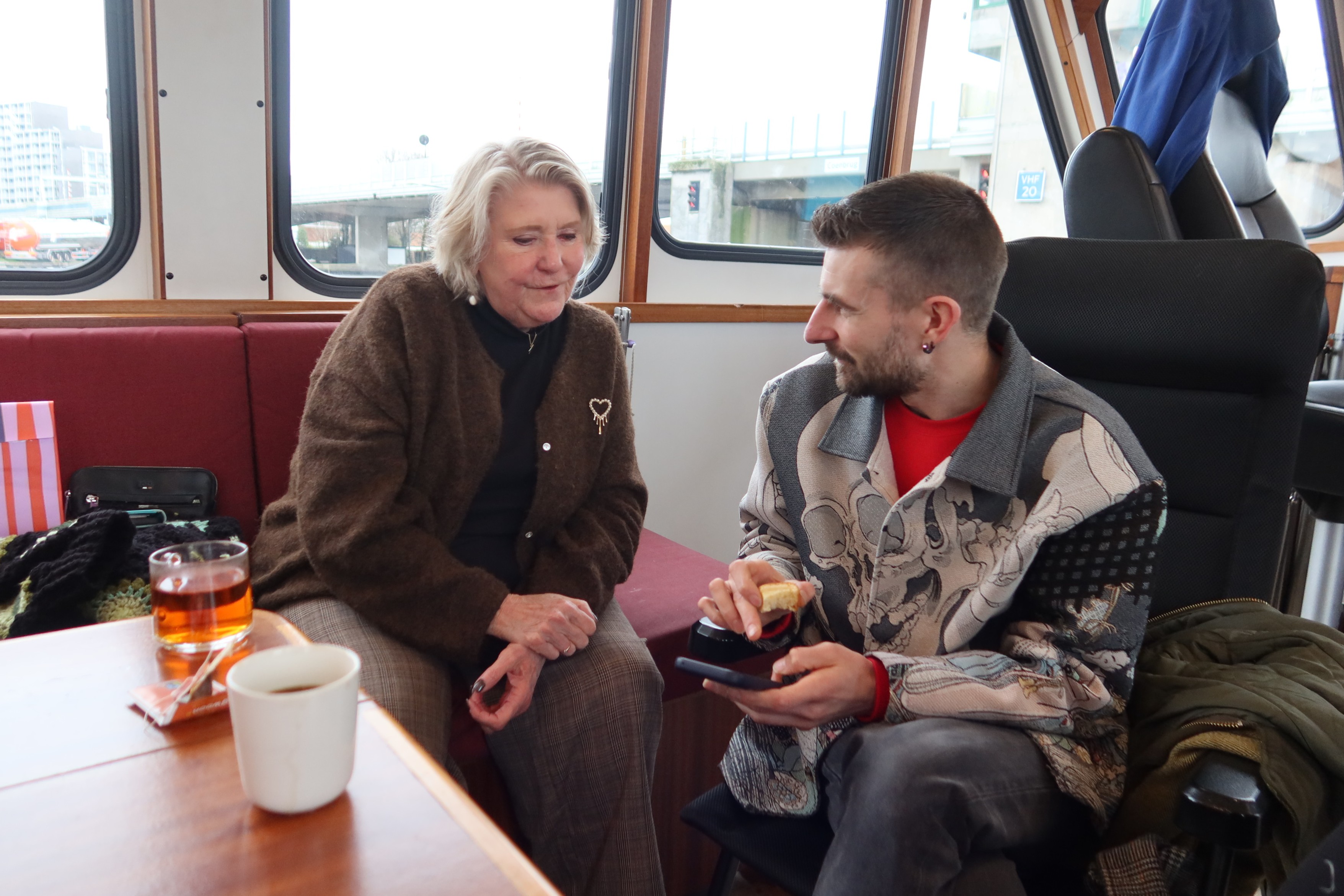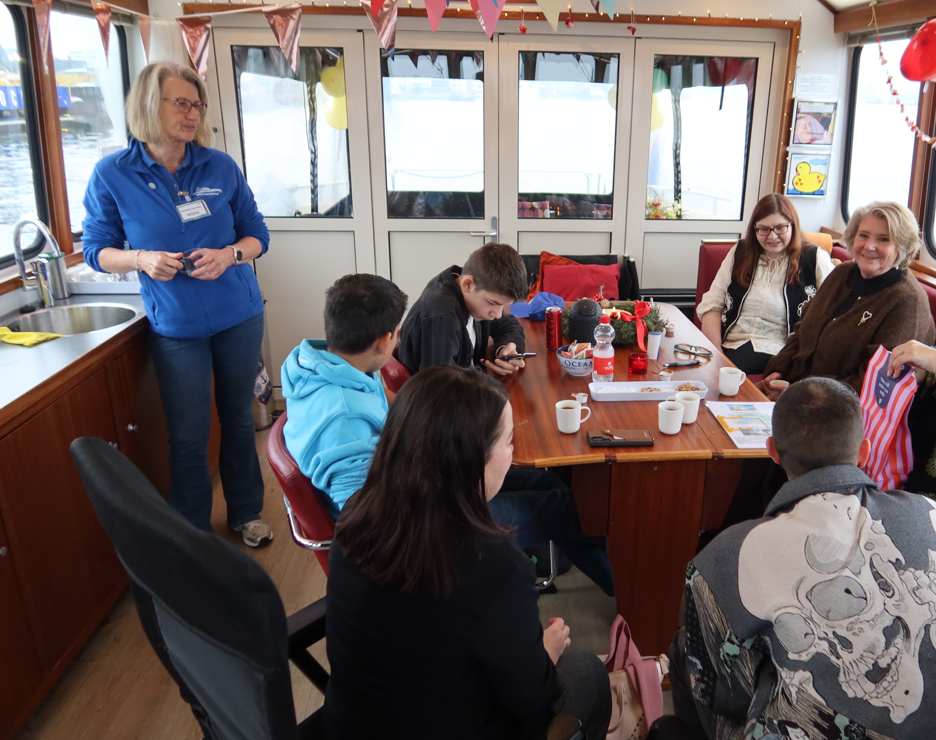 Shirley is blij verrast door de versiering en straalt als zij vertelt dat zij de laatste vier jaar zo gelukkig getrouwd is met Marlon. Maar er is nog een reden dat zij straalt. Na moeilijke berichten afgelopen zomer heeft zij onlangs van haar arts gehoord dat de ziekte op dit moment stabiel is en dat zij tijd heeft om mooie herinneringen te maken met haar dierbaren en dat is precies wat wij vandaag gaan doen. De jongens hebben zich inmiddels ondanks de mist op het voorbankje genesteld. Telefoon en spelletje binnen handbereik is het prima uit te houden. Shirley geniet van de aankleding van de boot, zij vertelt dat zij bloemist is geweest en heel erg houdt van kleine details, een kerststukje op tafel met wat lichtjes, de hartjes ballonnen en de feestelijke slingers, de opmaak van de koekjes schaal, alles is zoals zij het zelf ook zou doen. Thuis hebben zij een prachtige Kerstboom neergezet, want je moet immers het leven vieren als het kan. Met Kerst een uitgebreide Gourmet met de familie en nu dan de dag op de Vaarwens. Zij is al snel van mening dat het haar stoutste verwachtingen overtreft. Shirley is een prachtige en vooral krachtige vrouw, die iedereen om zich heen ruimte geeft en waardering geeft. Zij is zeker vandaag, maar wij vermoeden eigenlijk altijd, de spil van deze familie.