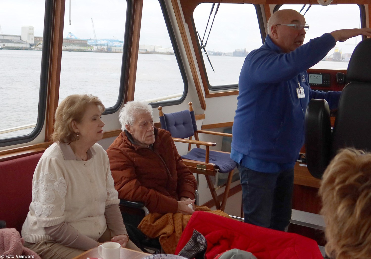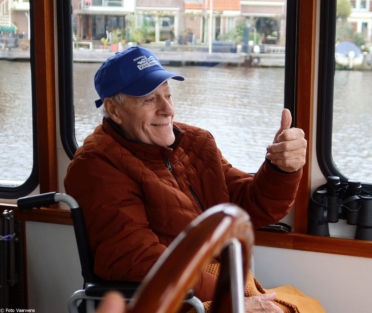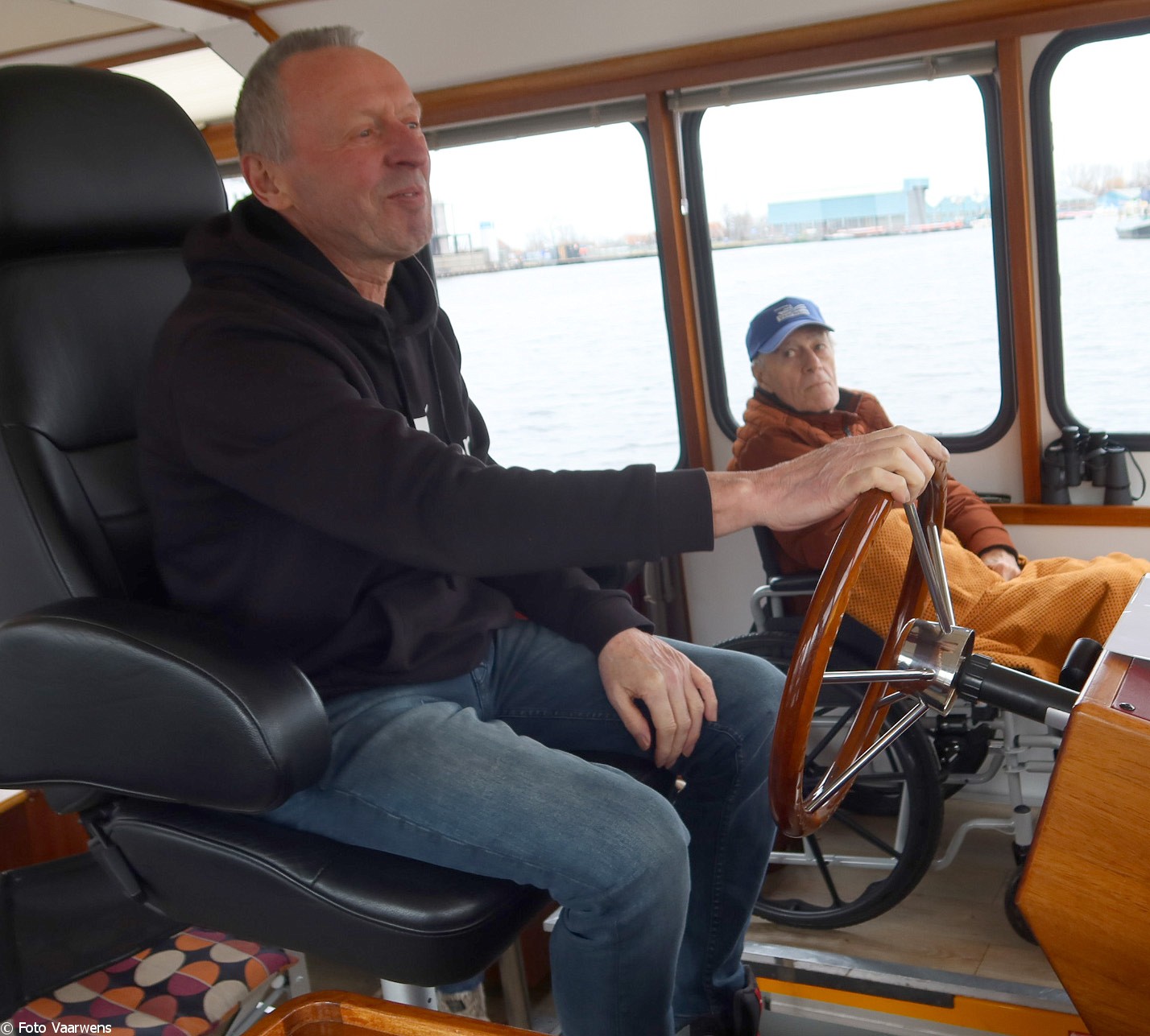 Jaap is vanuit Sliedrecht naar Amsterdam gebracht met de Stichting Ambulance Wens en wordt met zijn gezelschap aan boord van de Vaarwens verwelkomt door schipper Marcel en boots Gerda. Bij de koffie vertelt Marcel wat over de Stichting Vaarwens en het schip. In overleg met de gasten wordt besloten op de Zaanse Schans te bezoeken. Peter van de SAW helpt mee aan boord en al vlug zijn we onderweg. Jaap krijgt de verhoogde uitkijkpost links in het stuurhuis en geniet zichtbaar van het uitzicht op het Noordzeekanaal. Al snel zijn we bij de Zaan en passeren vlot de Wilhelminasluis en de brug en kunnen dan rustig genieten van het uitzicht op de Zaanse groene huisjes.