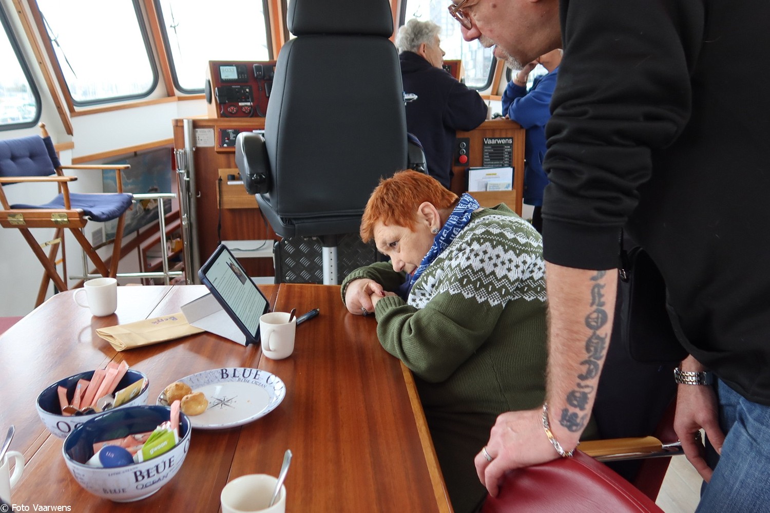 “Lieve mensen ga maar vast lekker zitten, het is hierbinnen heerlijk warm en wij moeten nog wel even e.e.a. voorbereiden voordat we kunnen afvaren, de koffie staat aan!” Beppie verontschuldigt het veel te vroege arriveren bij de Vaarwens, maar ja, meestal zit het tegen, maar vandaag zat het super mee (bij hen dan).