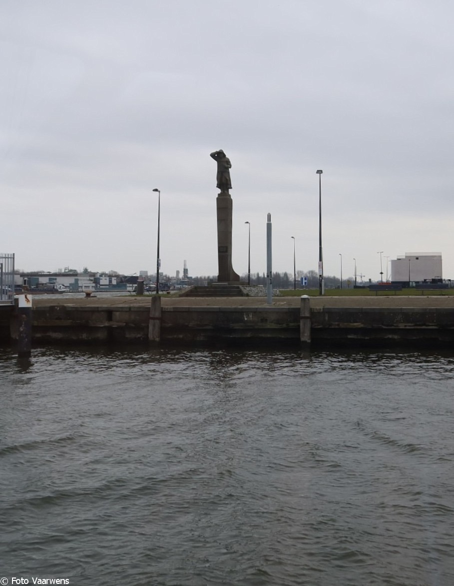 We schuiven de haven in en manoeuvreren ons schip weer op haar plaats. Het is droog, vrolijk grijs en zeker 3 graden warmer dan vanmorgen! Rinus gaat gauw van boord om te kijken waar de taxi staat (15:15 uur) en vertelt de taxichauffeur dat ze er zijn, dat de boot voor de wal ligt en dat hij de dames even op zal halen.