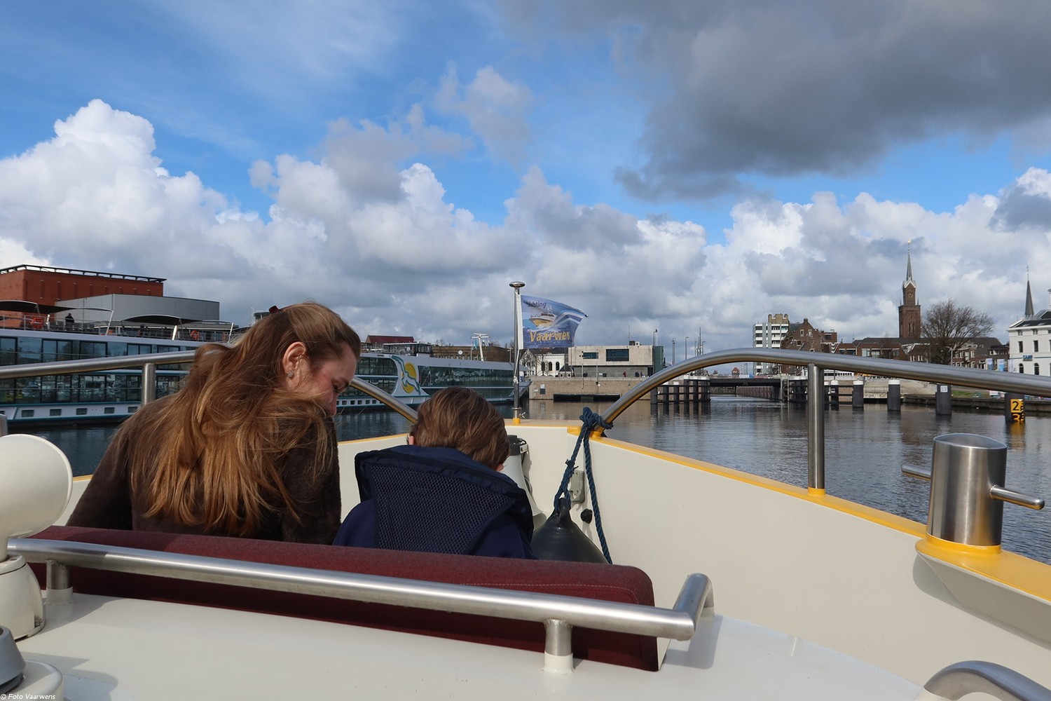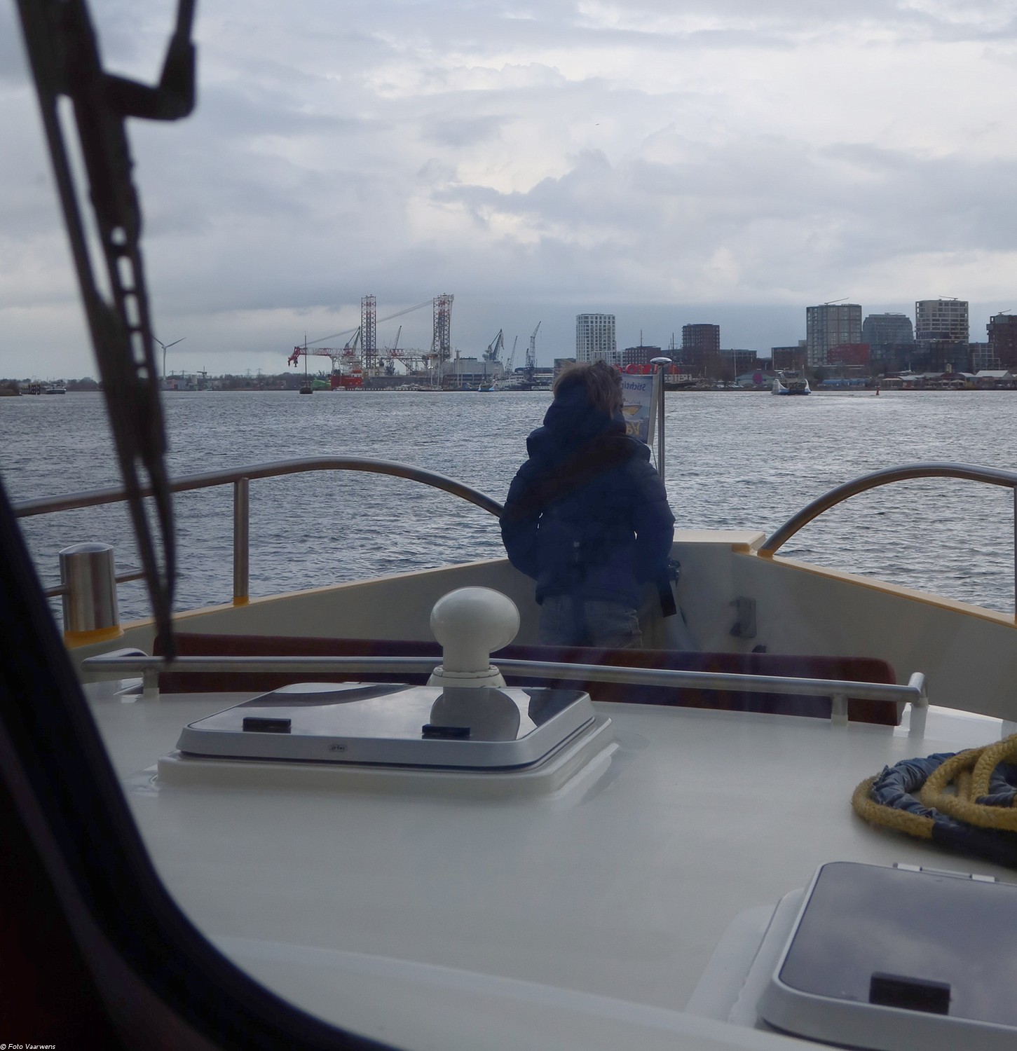 Na de lunch varen we rustig terug richting Amsterdam. Met de wind in de rug is het net warm genoeg om, goed aangekleed, even buiten op het bankje op de punt van het schip te zitten.