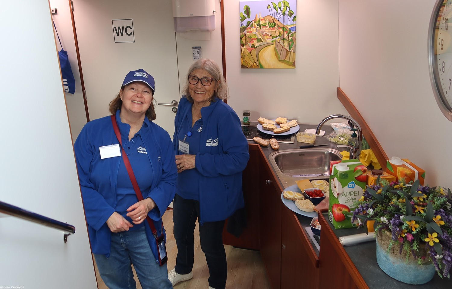 Boots Hanneke en Wendy duiken de kombuis in en snel staan er schalen met heerlijke broodjes op tafel. Een dag op het water maakt altijd hongerig.