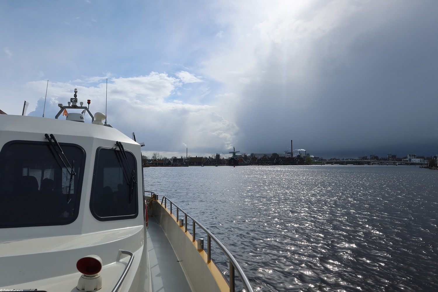 Een bezoek aan de Zaanse Schans staat vandaag op het programma. We varen vlot door de sluis en hebben het geluk dat ook de spoorbrug al openstaat bij aankomst.
