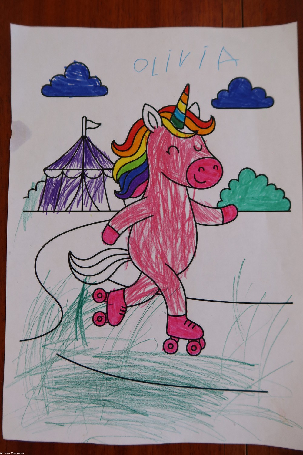 Ondertussen kleuren kleinkinderen Mason en Olivia enthousiast de Vaarwens‑kleurplaten.