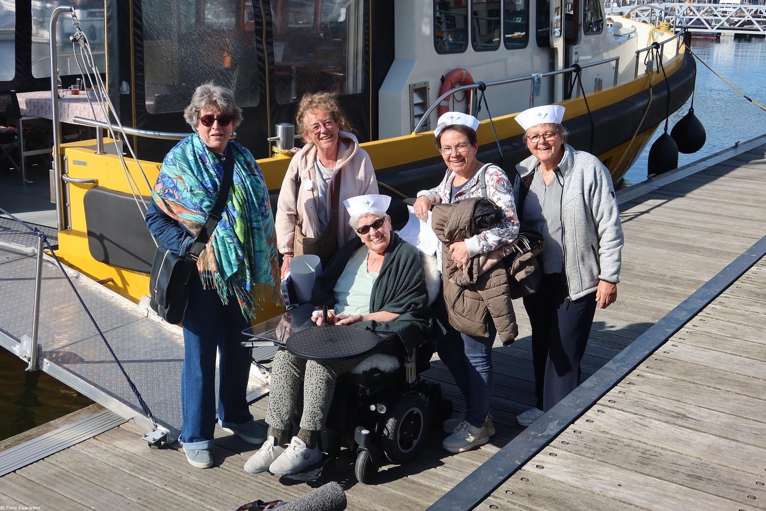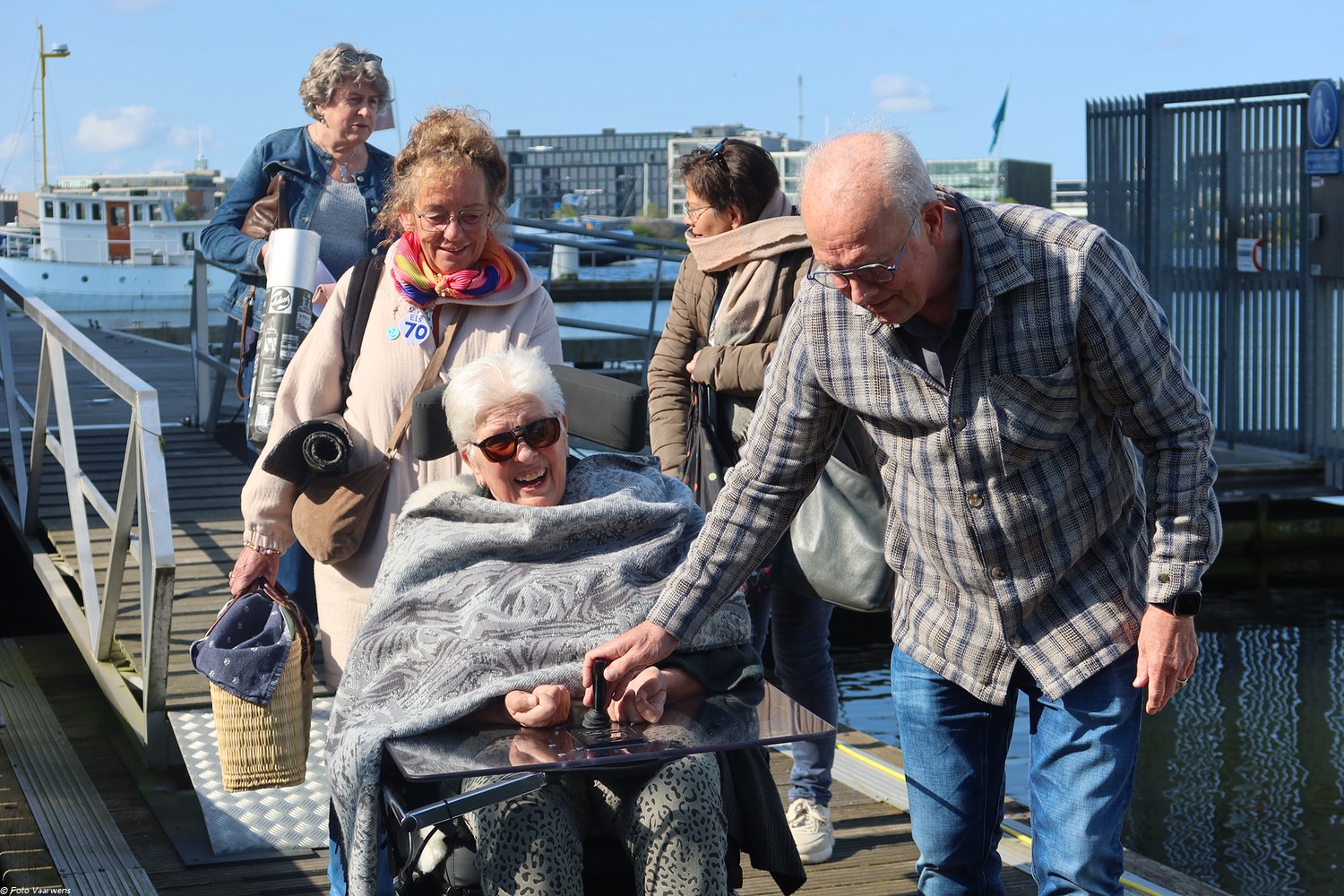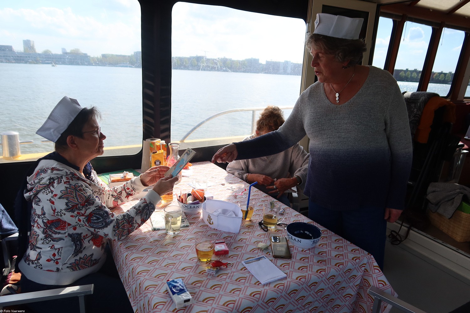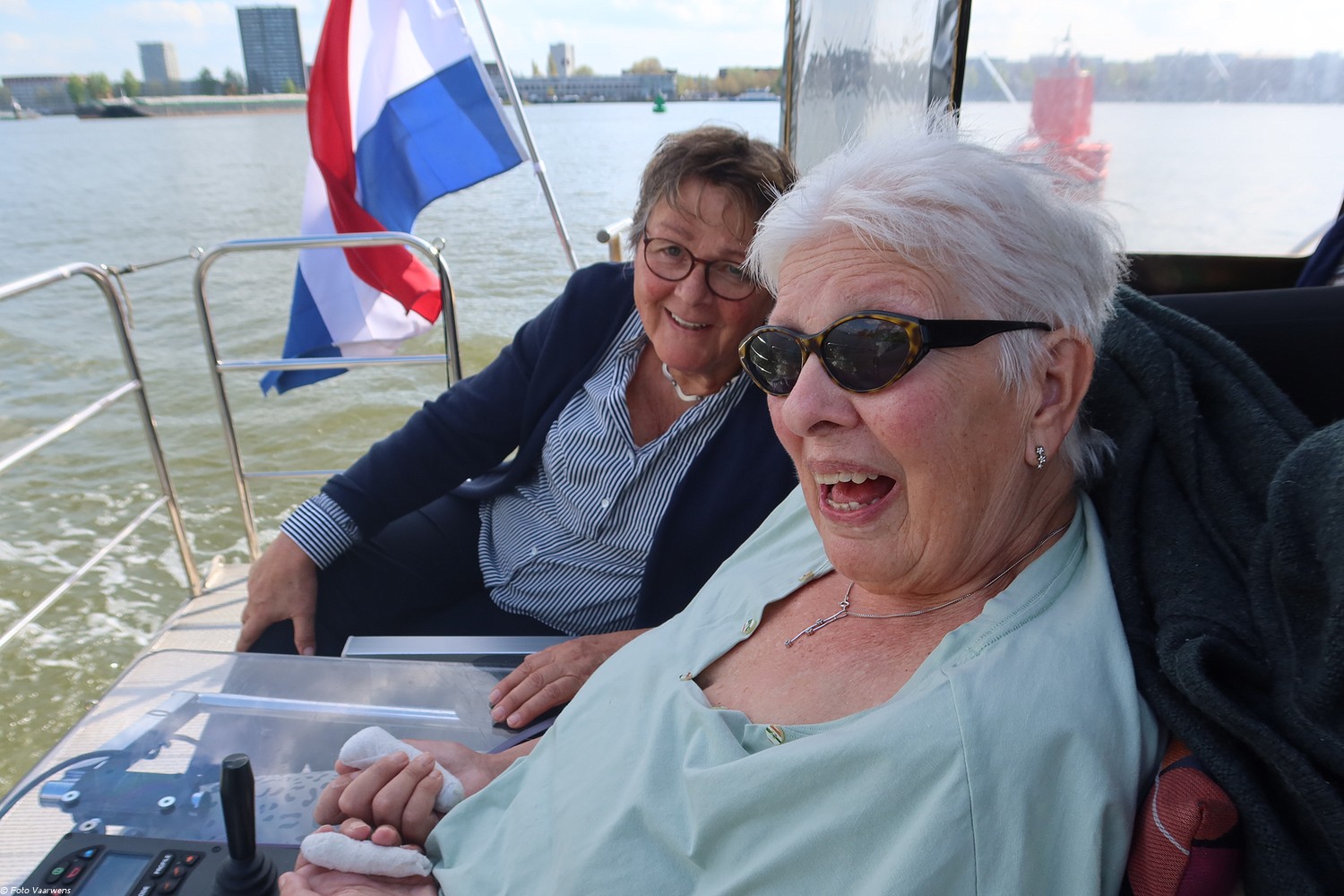 De vriendinnen Tineke, Ingrid, Rich, Hetty en Els zijn een bijzonder stel bij elkaar. Ze weten wat ze willen, zijn duidelijk in wat ze willen en laten de kaas niet van hun brood eten. Zo is Mike, partner van Tineke, de chauffeur van Tineke vandaag. Na de reis uit Oud-Beijerland, wat gedoe om de elektrische rolstoel uit de auto te krijgen en het gezelschap aan boord te welkomen, boden wij hem aan boord een kop koffie aan, maar de dames hebben dat voorstel luid en duidelijk afgewezen: het was immers een vriendinnenuitje. Intussen zie je de liefde voor elkaar er vanaf druipen. Want dat is er ook, de jarenlange betrokkenheid op elkaar en het verdriet om de gezondheidssituatie van Tineke.
